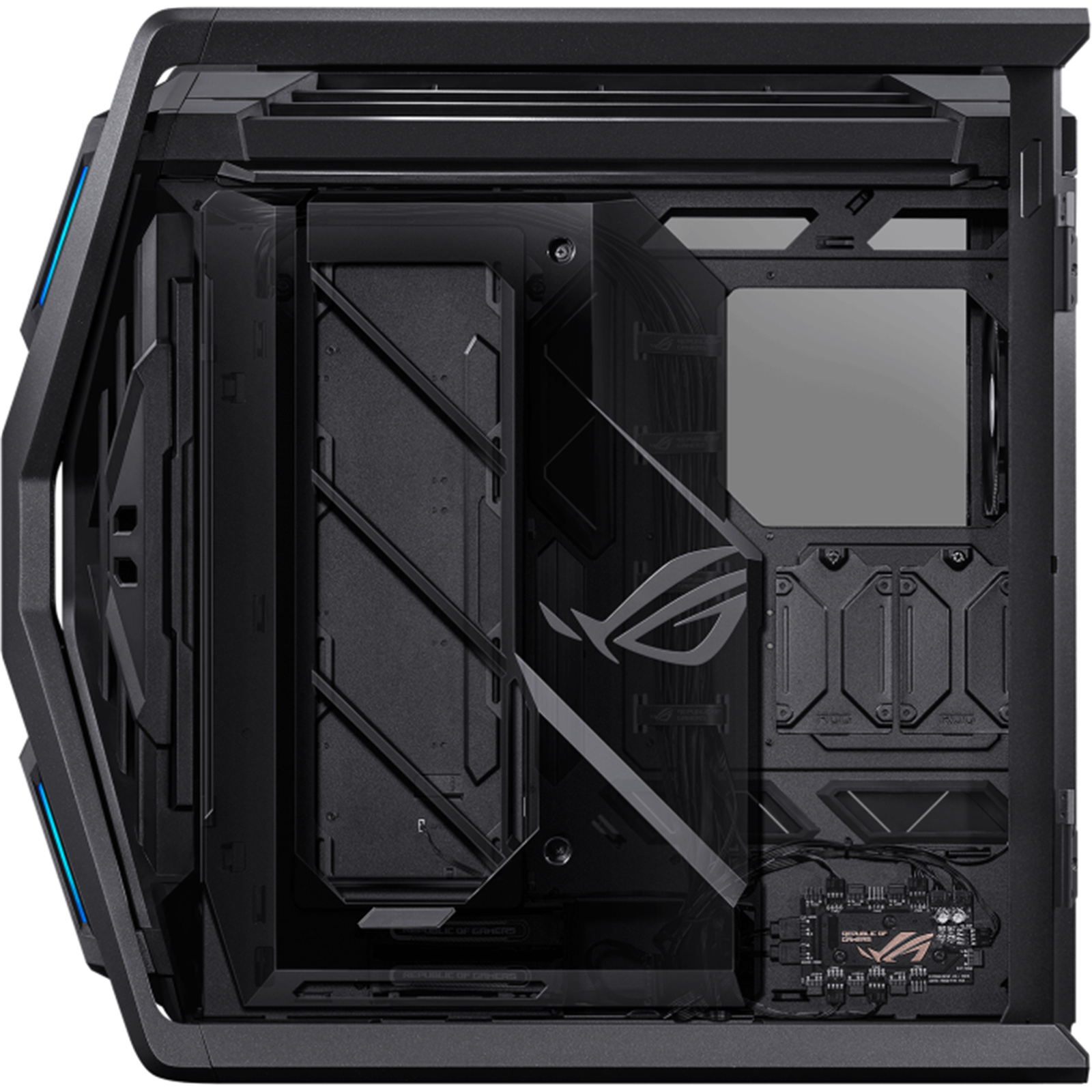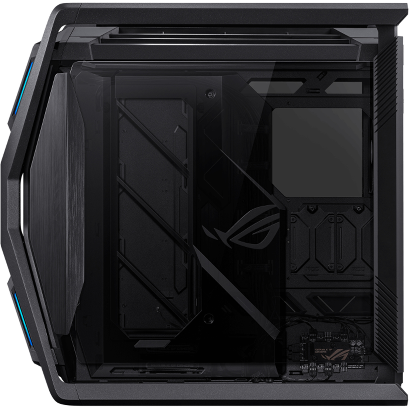 This chassis features an internal ARGB lighting panel that communicates the ROG identity to anyone who gazes within, and it can be displayed on the outside if builders want to make room in that spot for fans or SSDs.