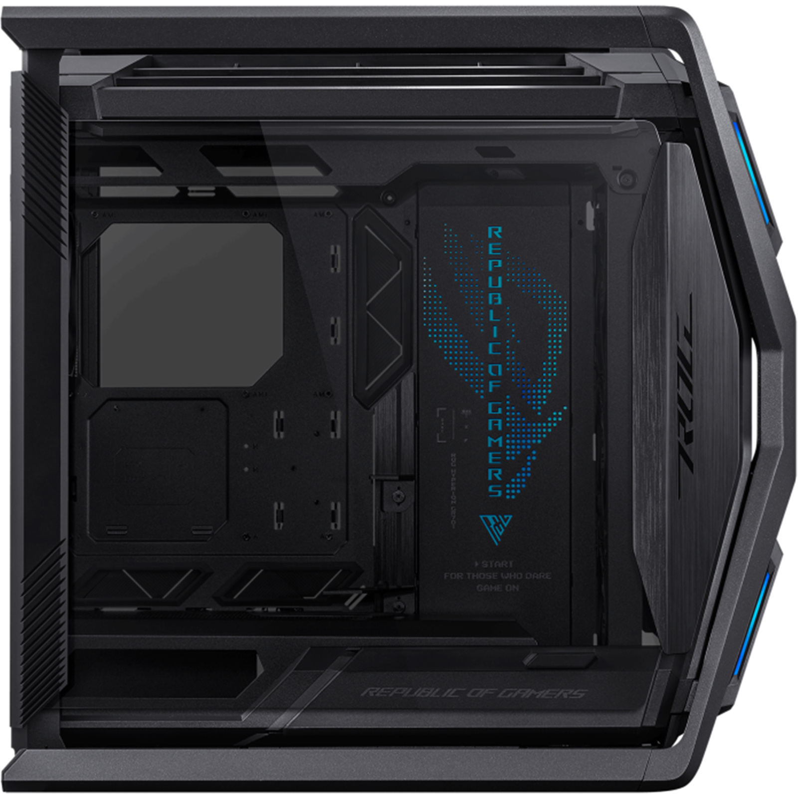 The ROG Hyperion GR701 brings an X factor in both form and function that builders around the world have been craving. With support for dual 420 mm radiators, towering video cards, a fully integrated 2-way aluminum graphics card holder, 60-watt device charging and dual front USB-C connectors for compatible ROG motherboards, it is truly a PC chassis in the coveted ROG style.