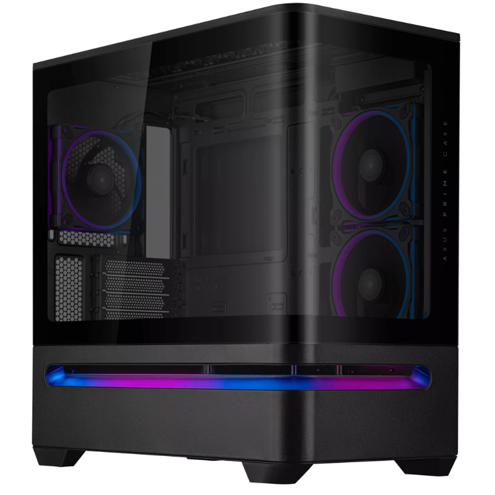 ?The ASUS Prime AP202 ARGB is a versatile panoramic mATX chassis designed to showcase system components with style. A curved tempered glass panel extends seamlessly from the front to the side, offering spectacular views of components from almost any angle. A patented slot vent provides optimal cooling for the graphics card, and an integrated ARGB light band works seamlessly with Aura Sync.