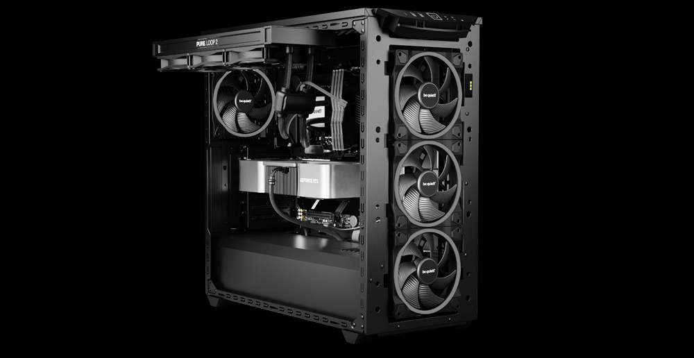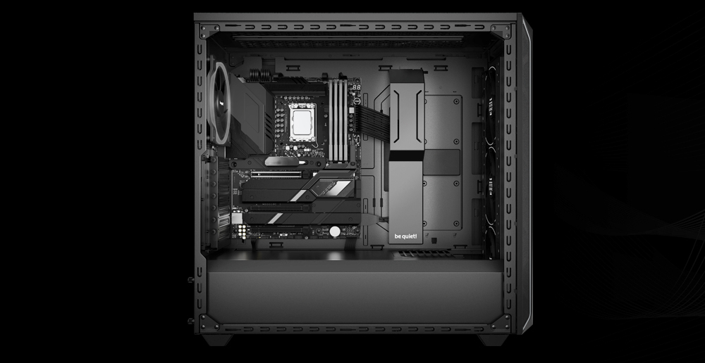 With its remarkably large dimensions, Shadow Base 800 FX Black sets no limits on creativity. It can accommodate radiators up to 420mm, E-ATX motherboards and even the largest graphics cards.