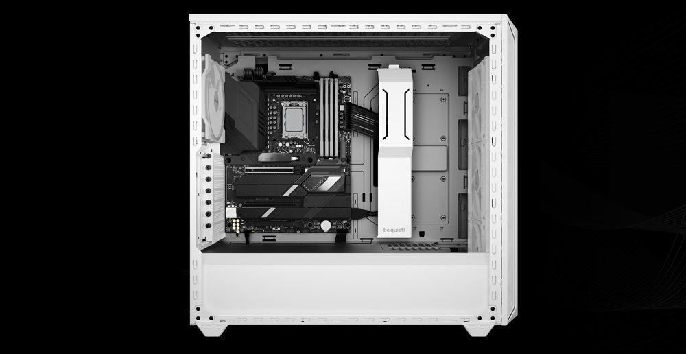 No matter the size or number of components built into the Shadow Base 800 FX White, with the cleverly integrated cable bars you can easily avoid annoying clutter. This results in a clean interior.