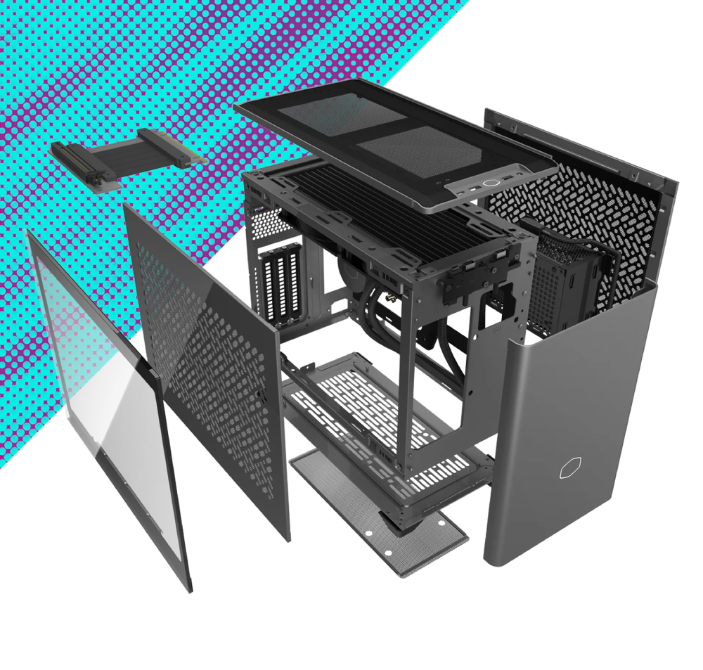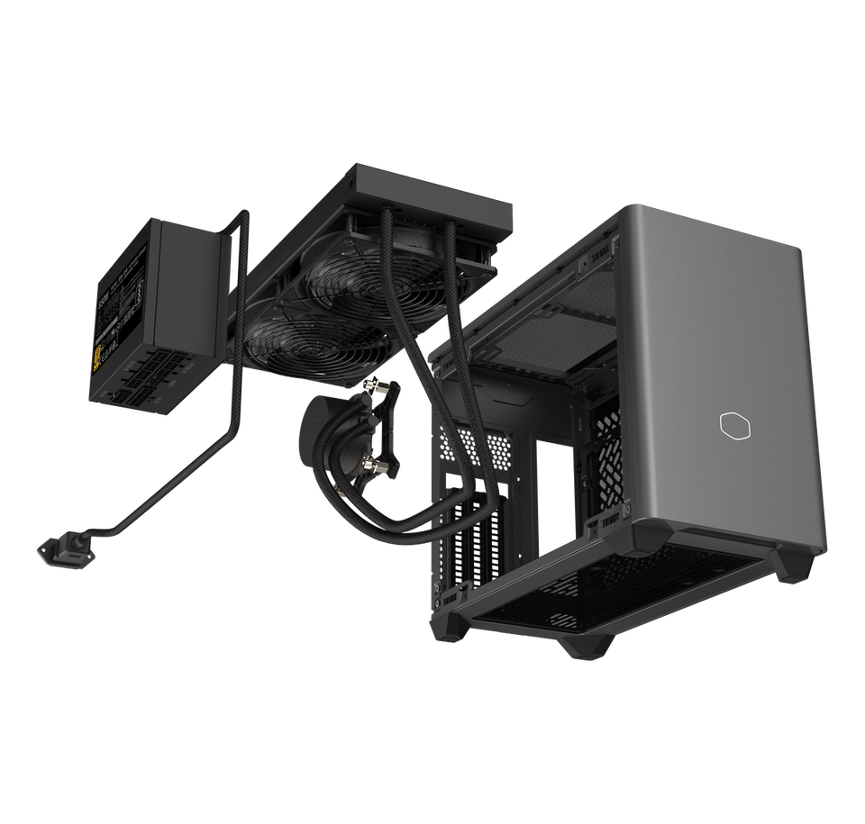 Cooler Master MasterCase NR200P V2 Tempered Glass With Additional Steel Panel 280mm AIO Pre-installed, GPU Support Upto 357mm, 3x PCI, 850W SFX PSU Pre-Installed- Front: 1x Type C, 2x USB, HD Audio
