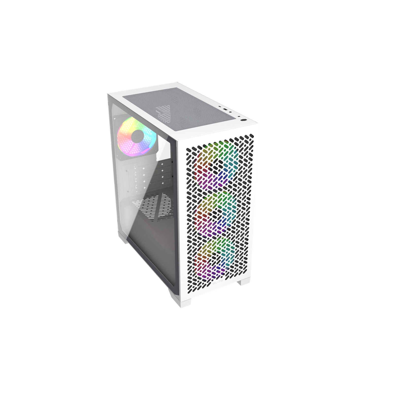 Cooler Master Elite 302 ITX/mATX White Mini Tower Gaming Case Tempered Glass, 4 x120mm ARGB Fans Pre-installed, CPU Cooler Support Upto 163.5mm, GPU Support Upto 365mm, 4x PCI Slot, 360mm Radiator Supported, Front I/O: 1x USB 3.2, 1x Type C