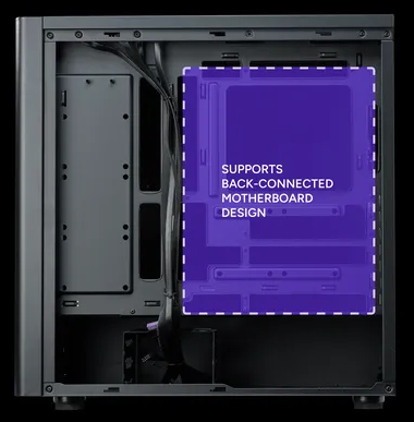 Supports back-connected motherboard design, freeing up space at the front of the case and providing 33-35mm of space behind the motherboard tray for easier cable management.