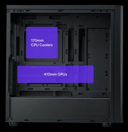 Supports a 410mm GPU, a 170mm CPU cooler, and ample space for future hardware upgrades.