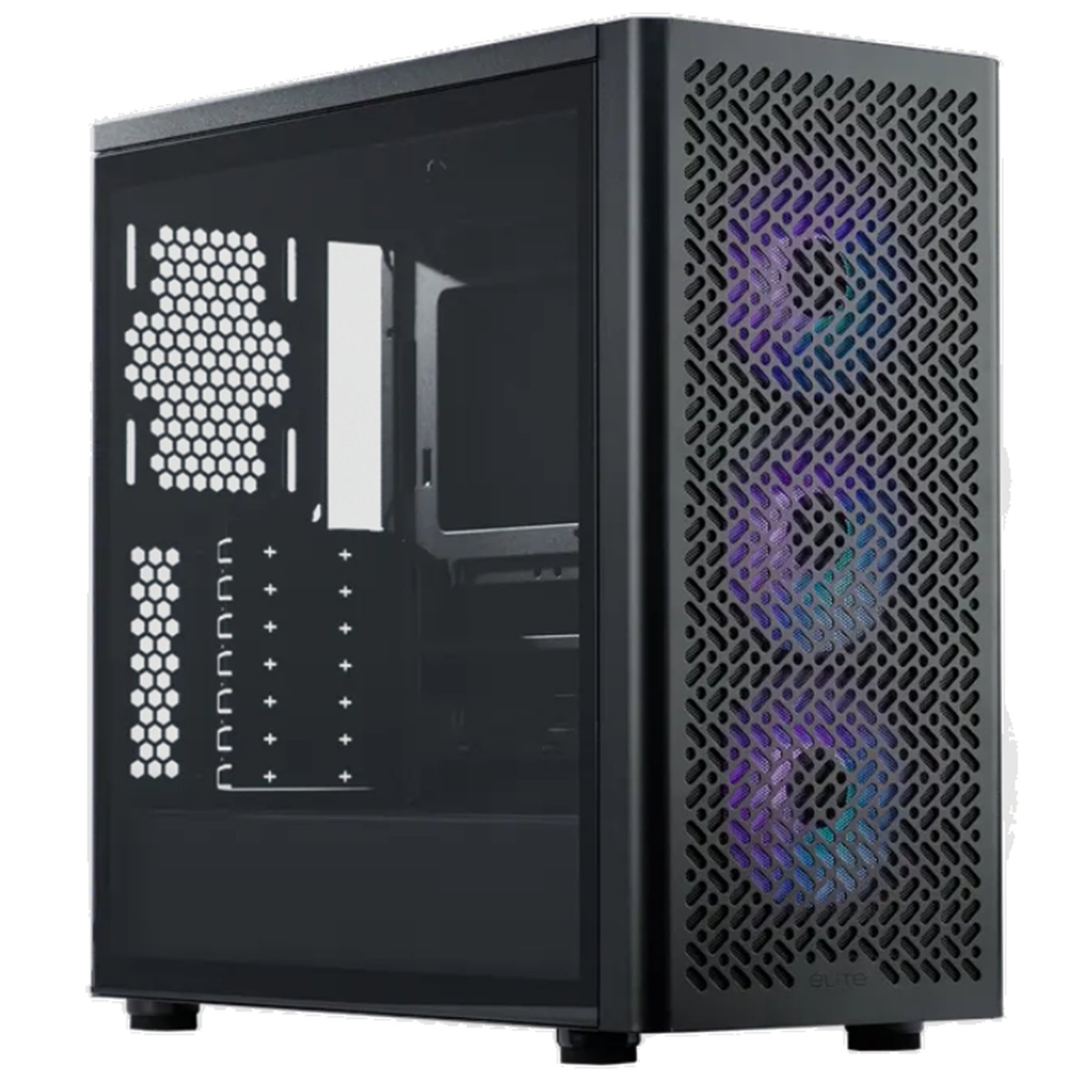 Cooler Master Elite 502 MidTower Gaming Case Tempered Glass, 4x ARGB 120mm Fan Pre-installed, CPU Cooler Support Upto 170mm, GPU Support Upto 410mm, 7x PCI Slot, 360mm Radiator Supported, Front I/O: 1x USB 3.2, 1x Type C, HD Audio