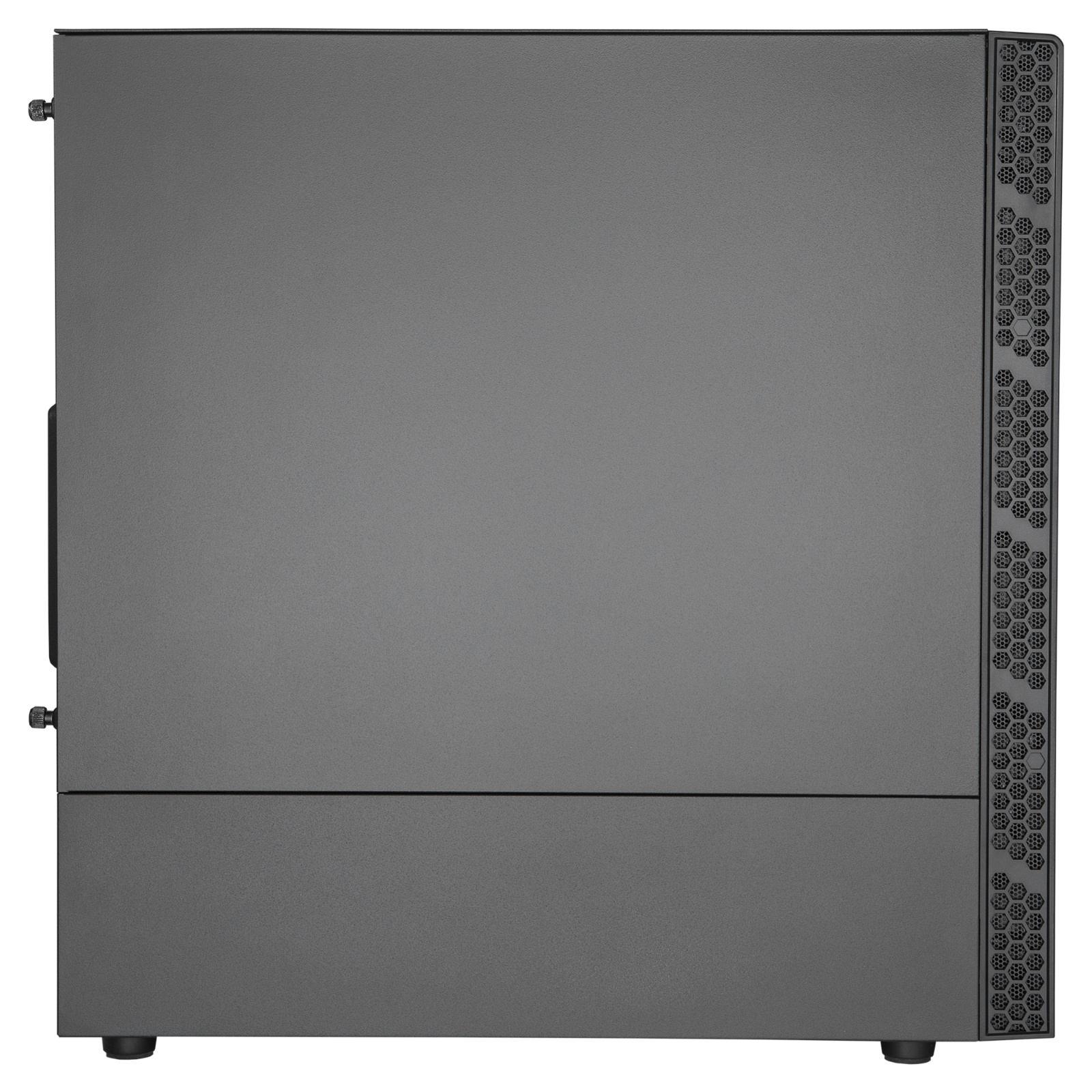 Large, mesh intakes span each side of the front panel to provide additional airflow to system.