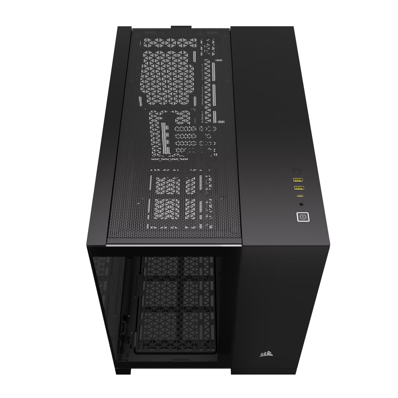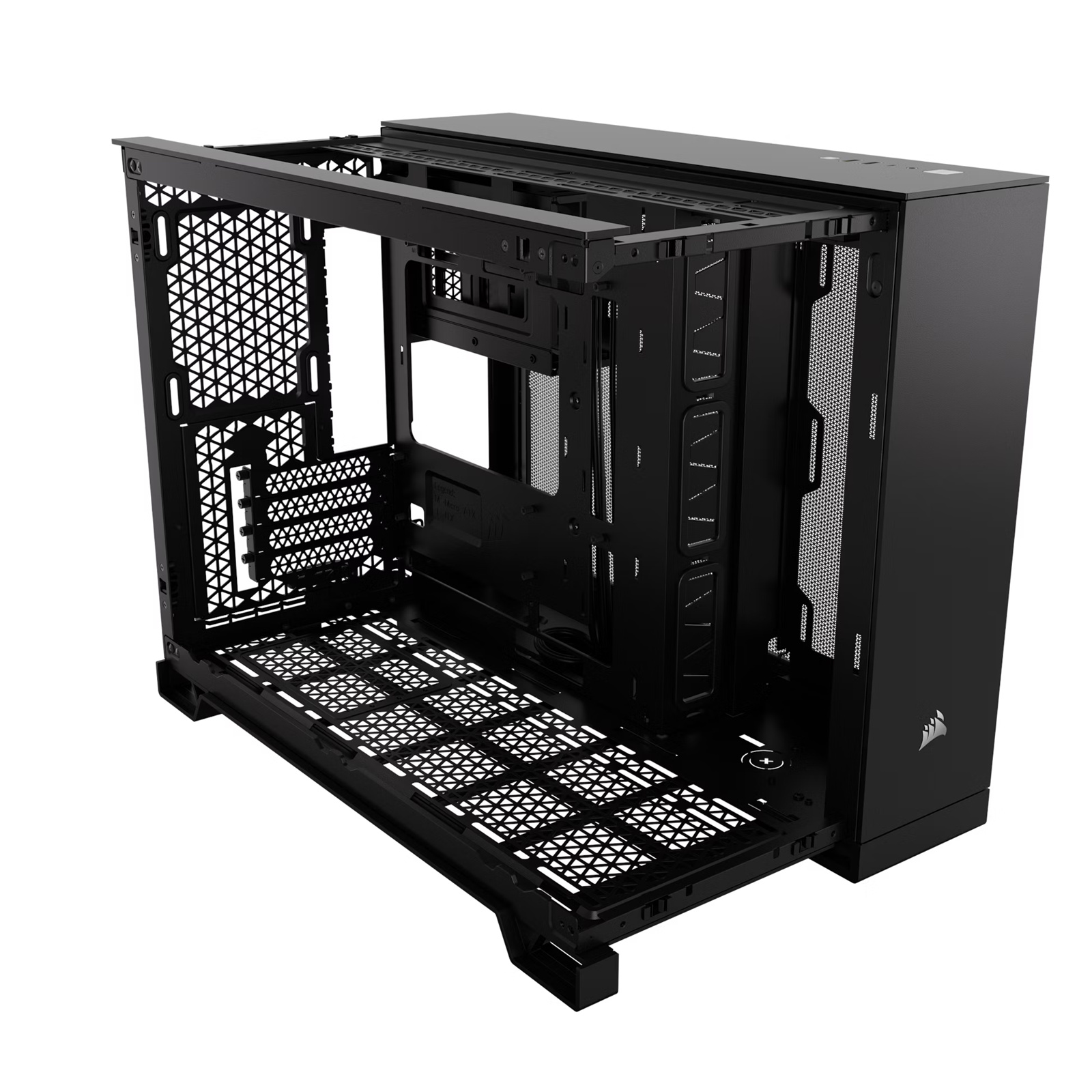 The CORSAIR 2500X Mid-Tower Dual Chamber PC Case delivers exceptional airflow and cooling with fully mesh paneling and a dual chamber design for an organized, stunning build.