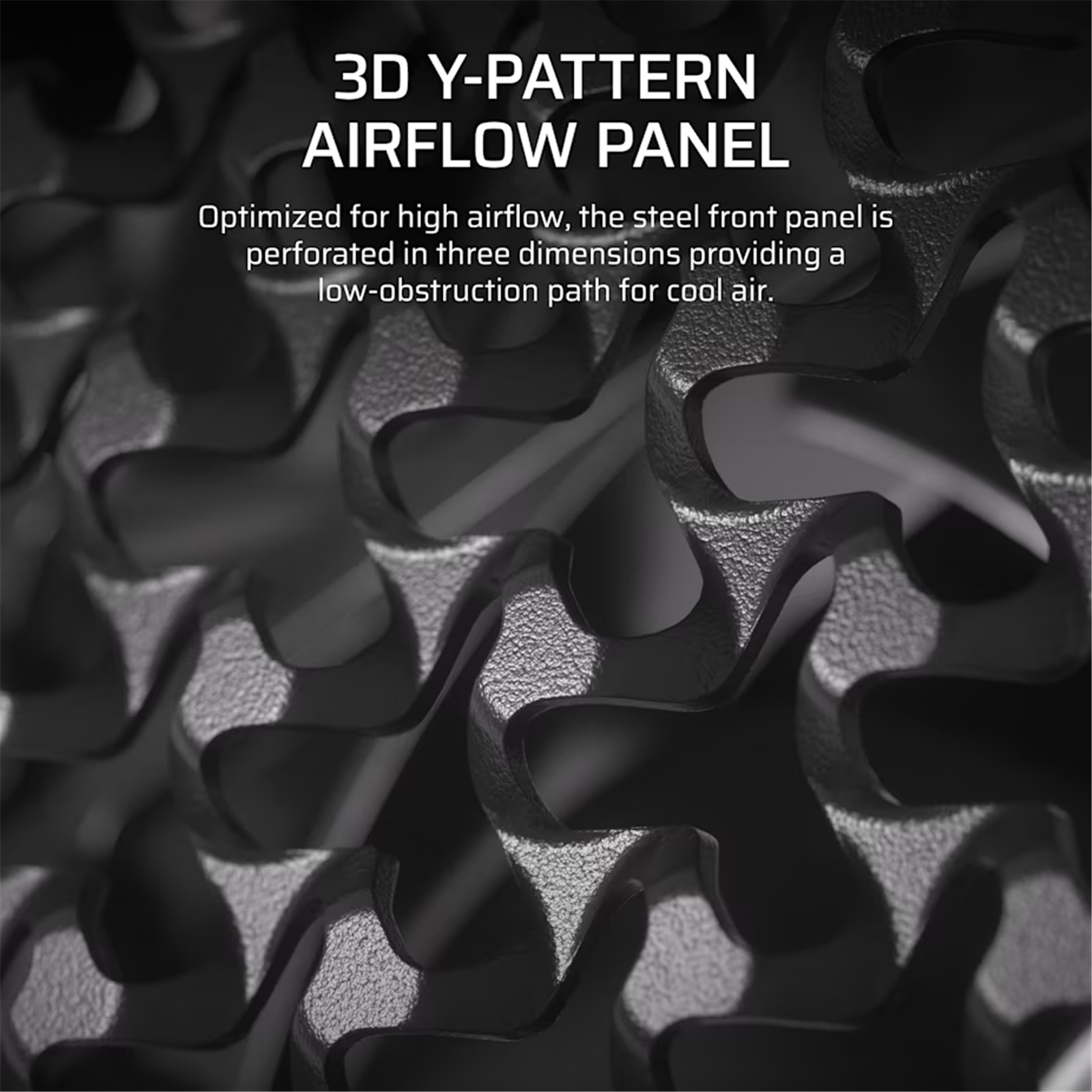 Engineered for maximum airflow and minimal resistance, the new 3D Y-pattern steel front panel ensures a smooth, unobstructed path for cool air, enhancing overall cooling.