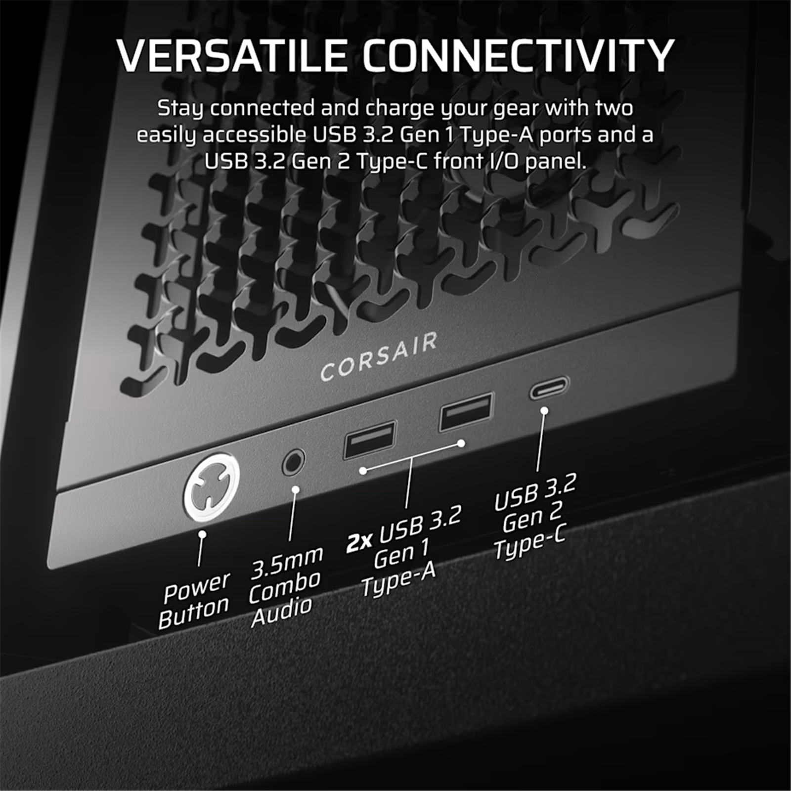 Puts your connections within easy reach, including a USB 3.2 Gen 2 Type-C Port, 2x USB 3.2 Gen 1 Type-A ports, and a combination audio/microphone jack.