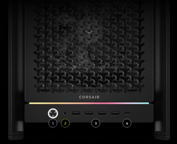 Puts your connections within easy reach, including a USB 3.2 Gen 2 Type-C Port, 4x USB 3.2 Gen 1 Type-A ports, and a combination audio/microphone jack.