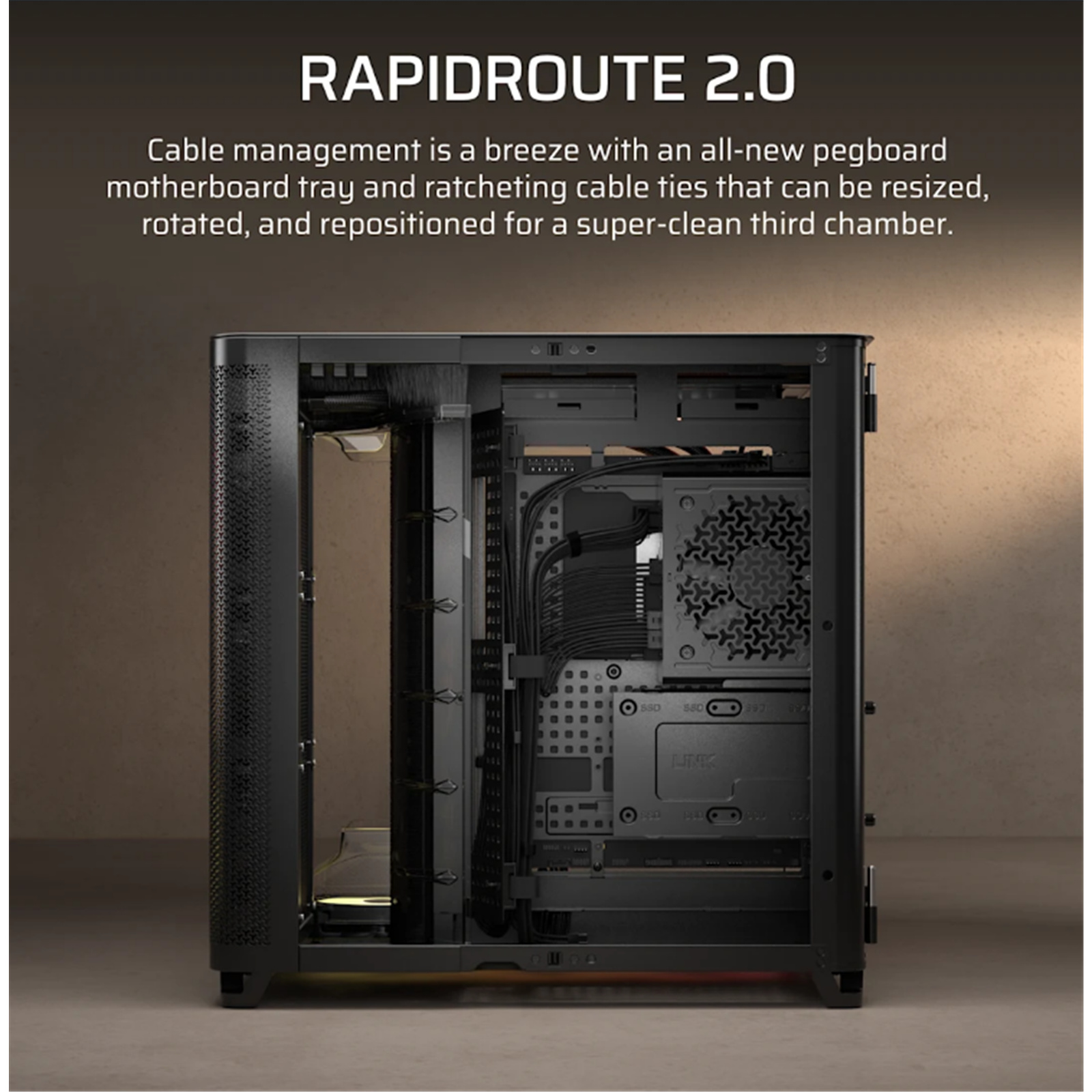 Cable management has never been easier with RapidRoute 2.0. It features a new pegboard motherboard tray so you can easily move and rotate cable ties wherever you like for a tidy build.