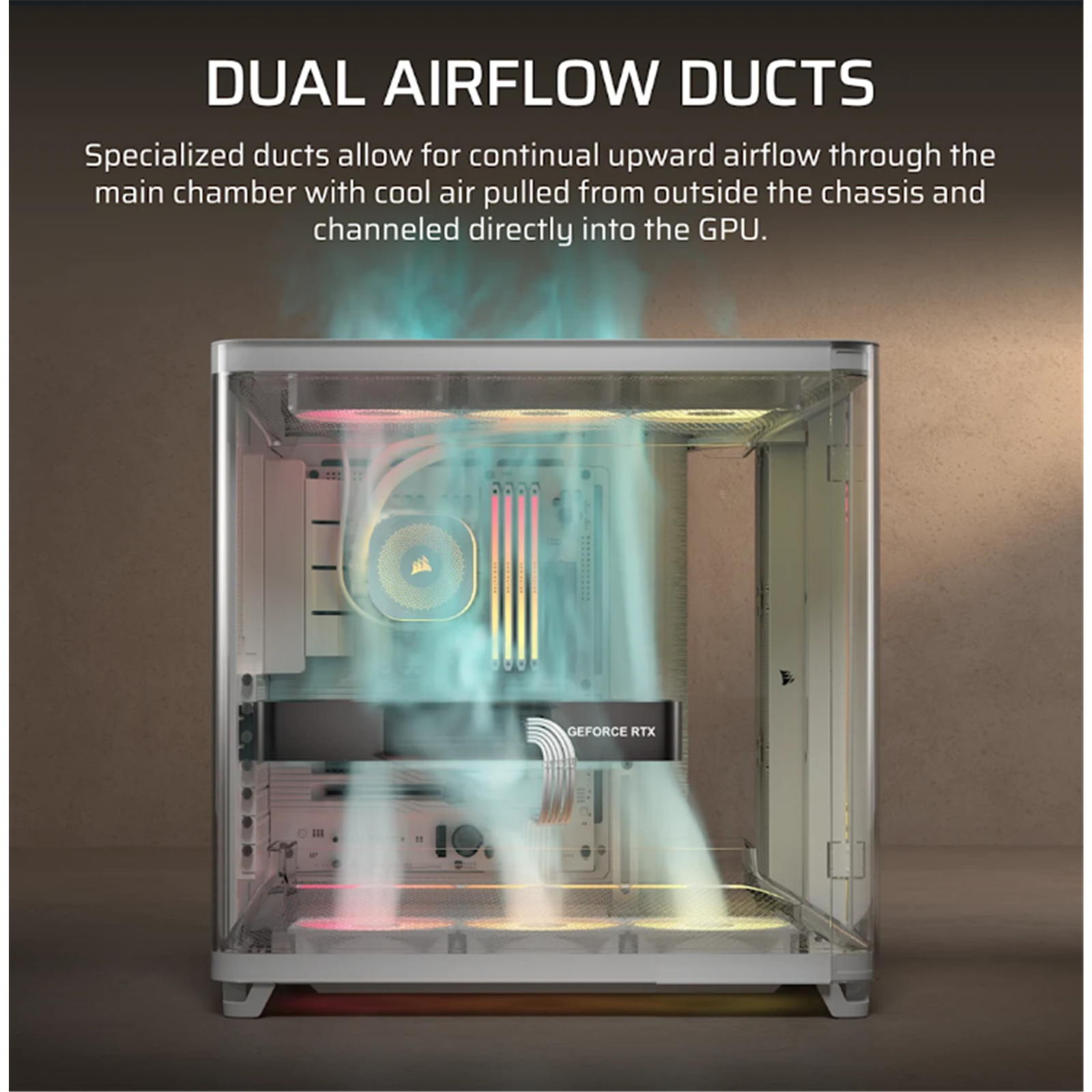 The roomy interior was designed specifically for the most powerful GPUs with plenty of room to breathe and dual airflow ducts to channel cool air through the GPU for maximum performance.