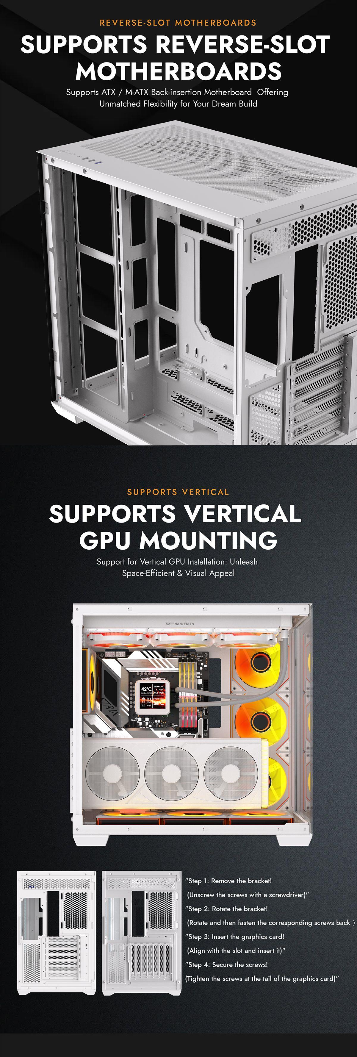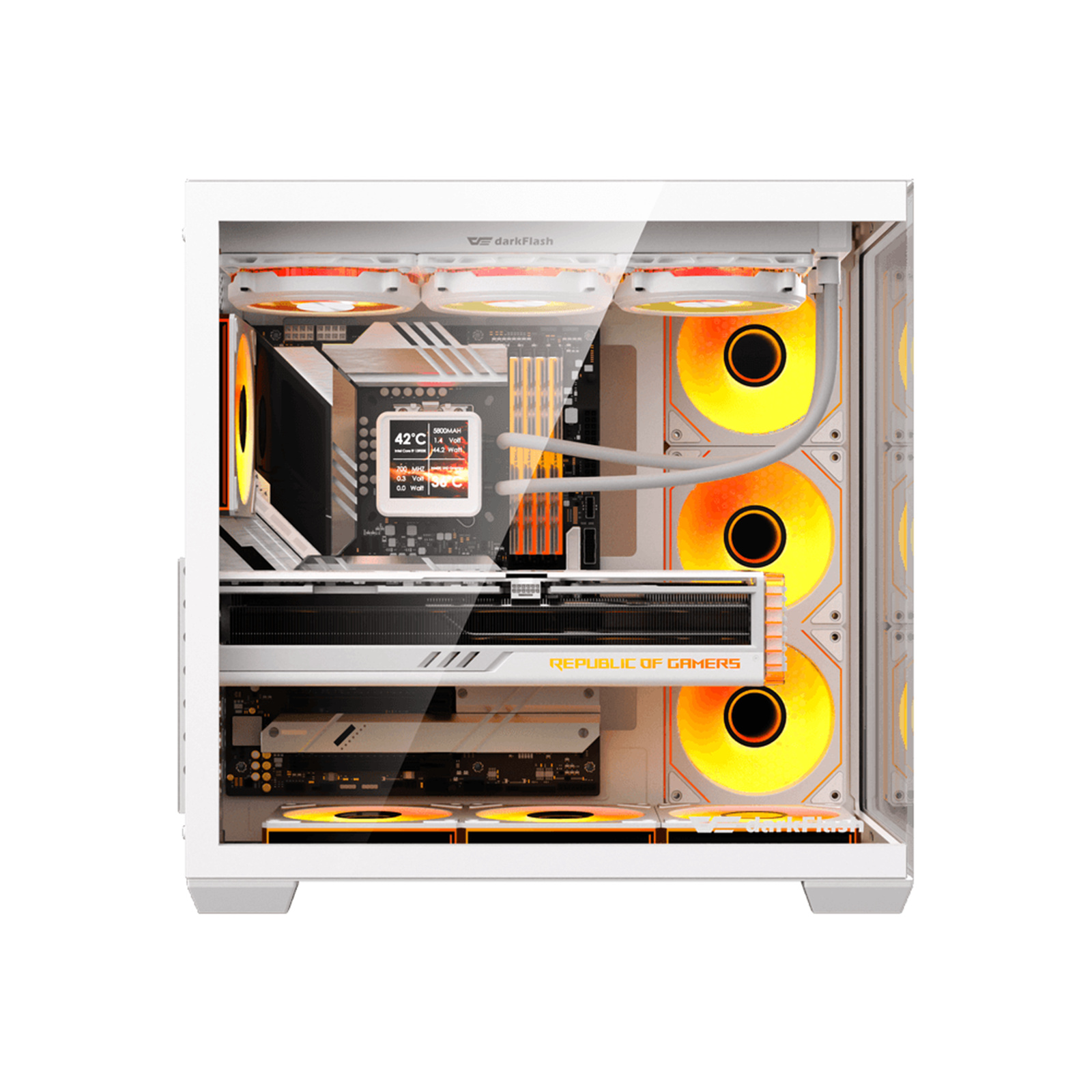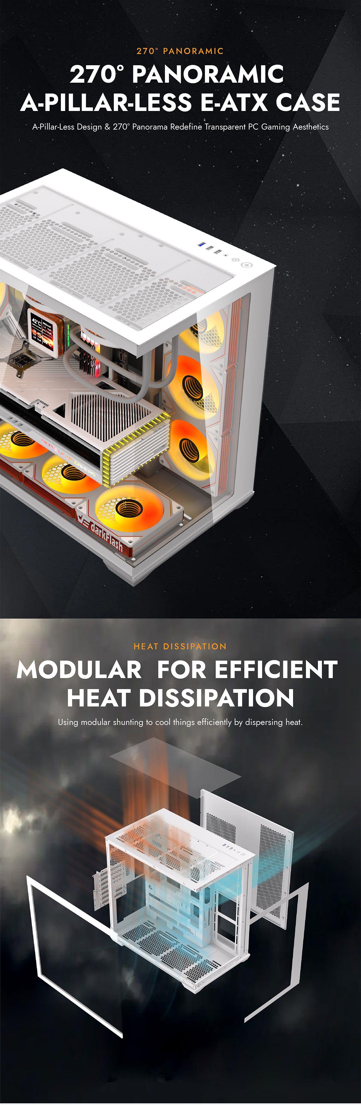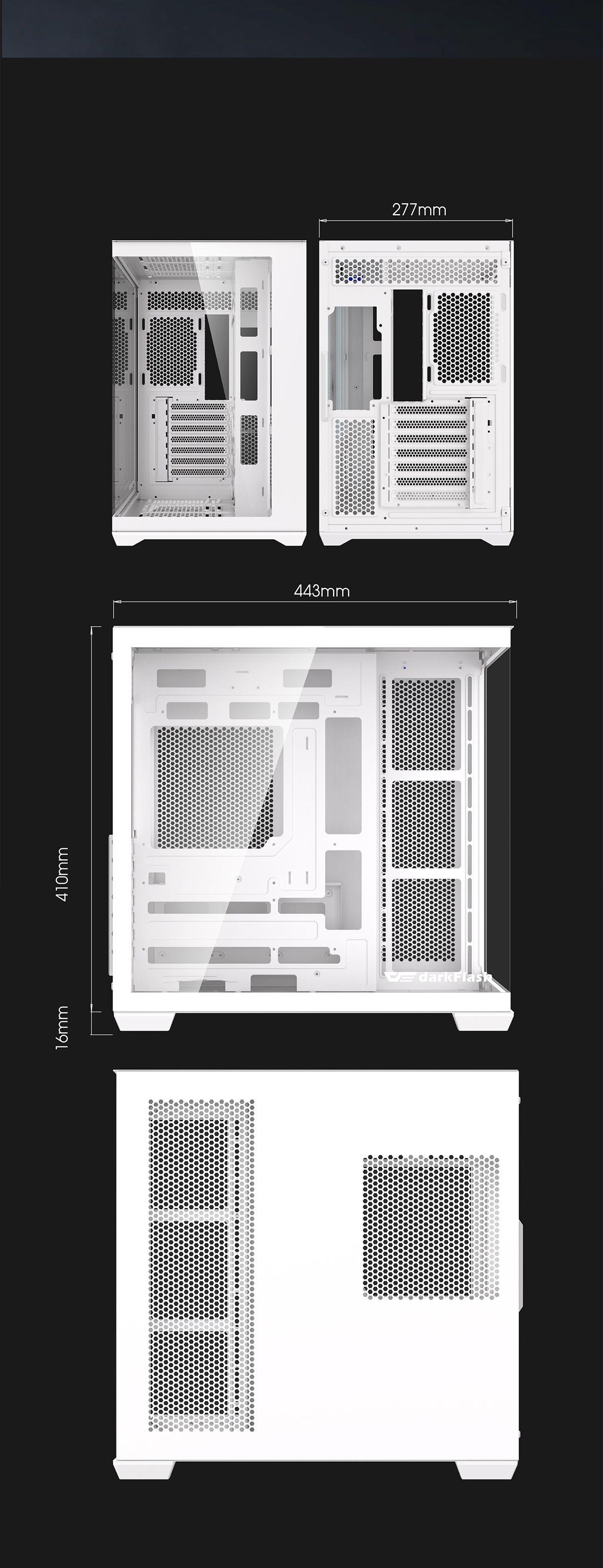 DARKFLASH C280 Dual Chamber Tempered Glass EATX Mid Tower Case - White