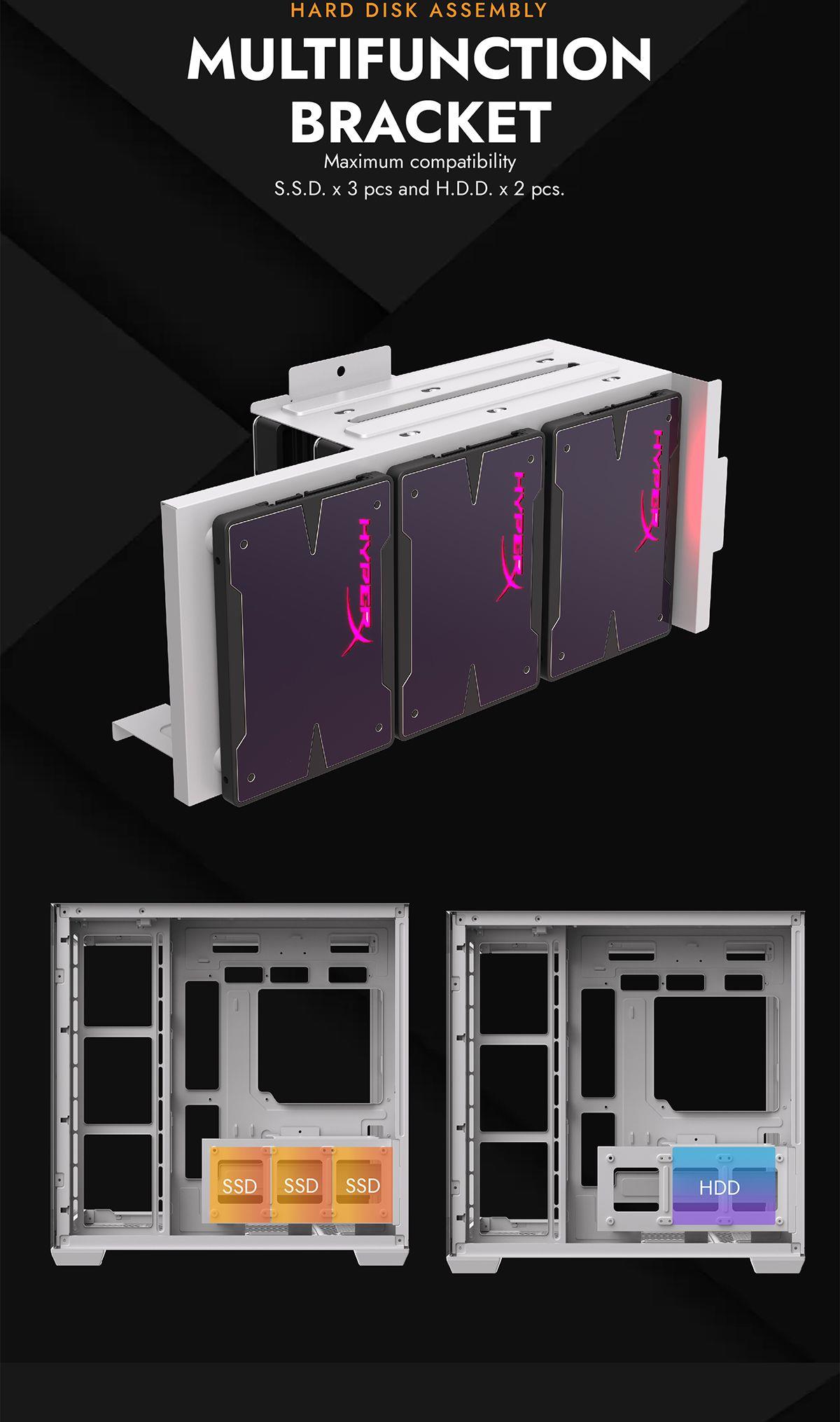 7x ARGB Fans - CPU Cooler Support up to 155mm - GPU Support up to 420mm - 7x PCI Slots - 360mm Radiator Support - Front I/O: 3x USB - HD Audio