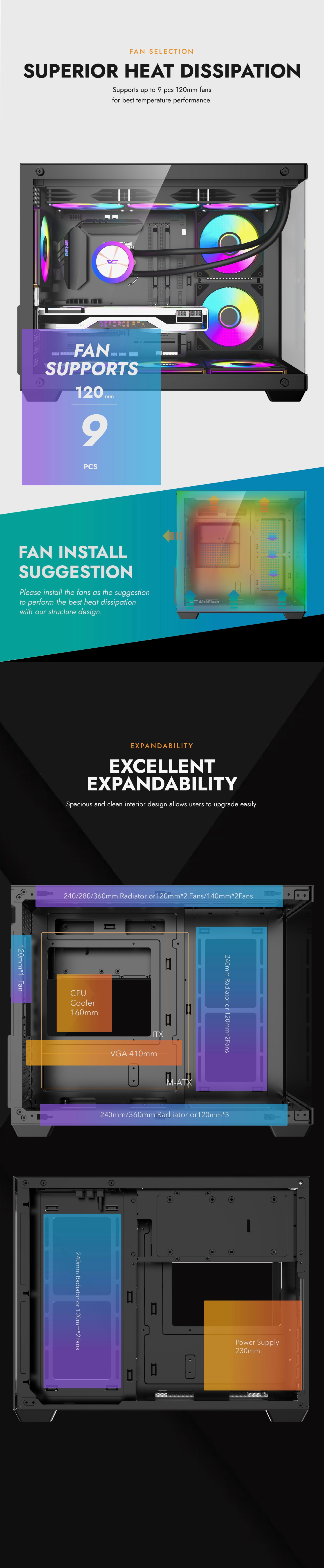 - Optimized airflow layout supports up to 9 fans for superior cooling efficiency