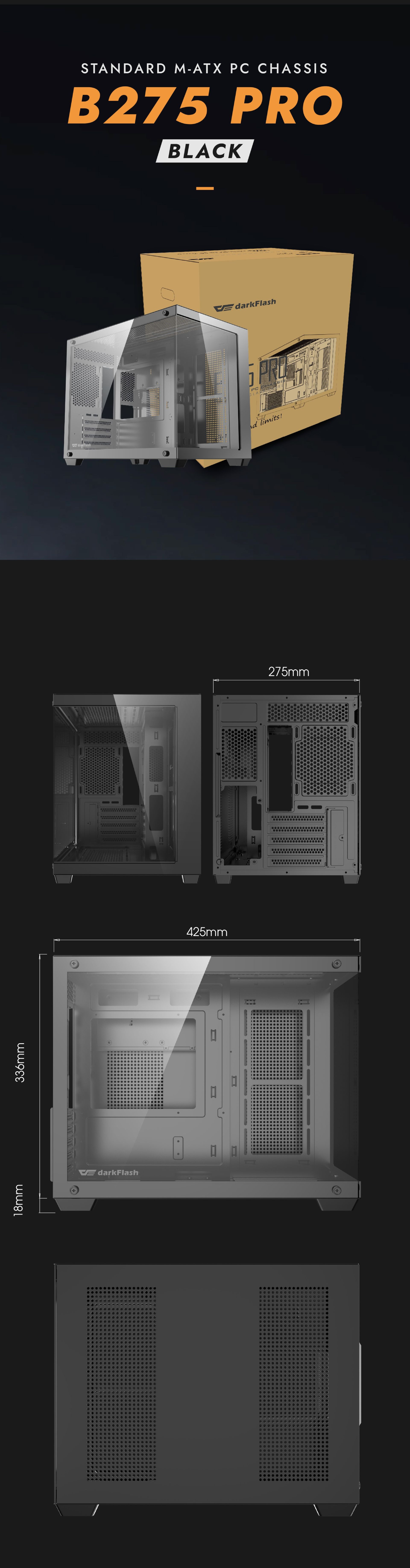 Product URL: https://www.pbtech.co.nz/product/CHADKF0009/DARKFLASH-B275-Pro-Tempered-Glass-mATX-Mini-Tower