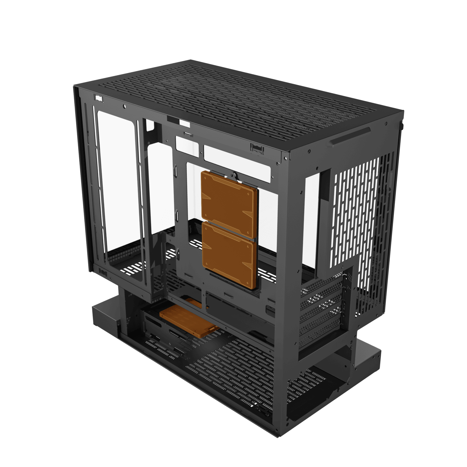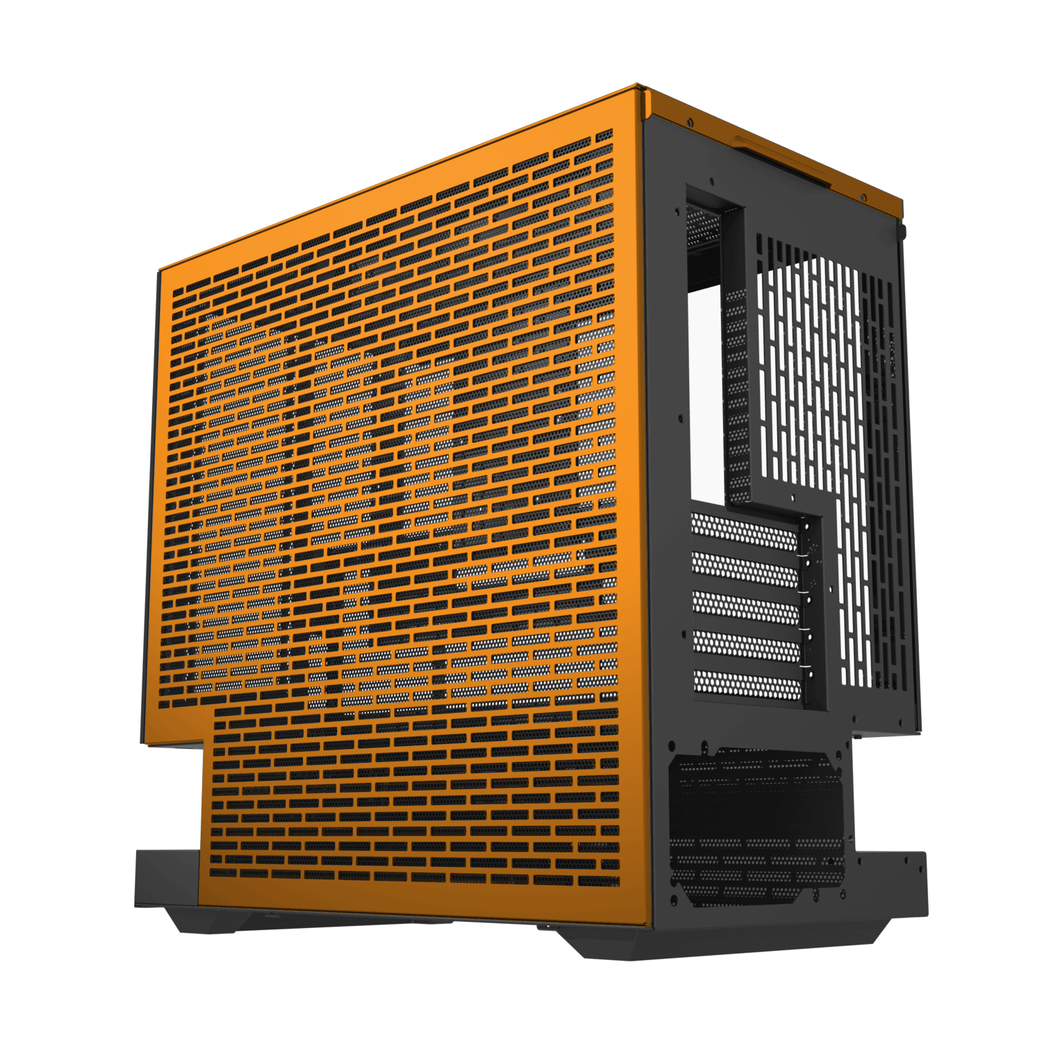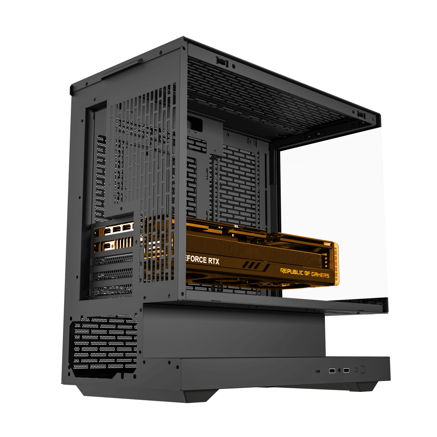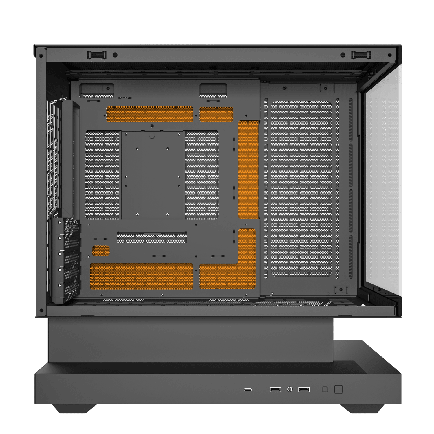 Floating above its foundation, the base channels air from bottom and sides into a seamless multidirectional flow. Cooler, steadier, and built for performance, it turns airflow into a defining part of the design