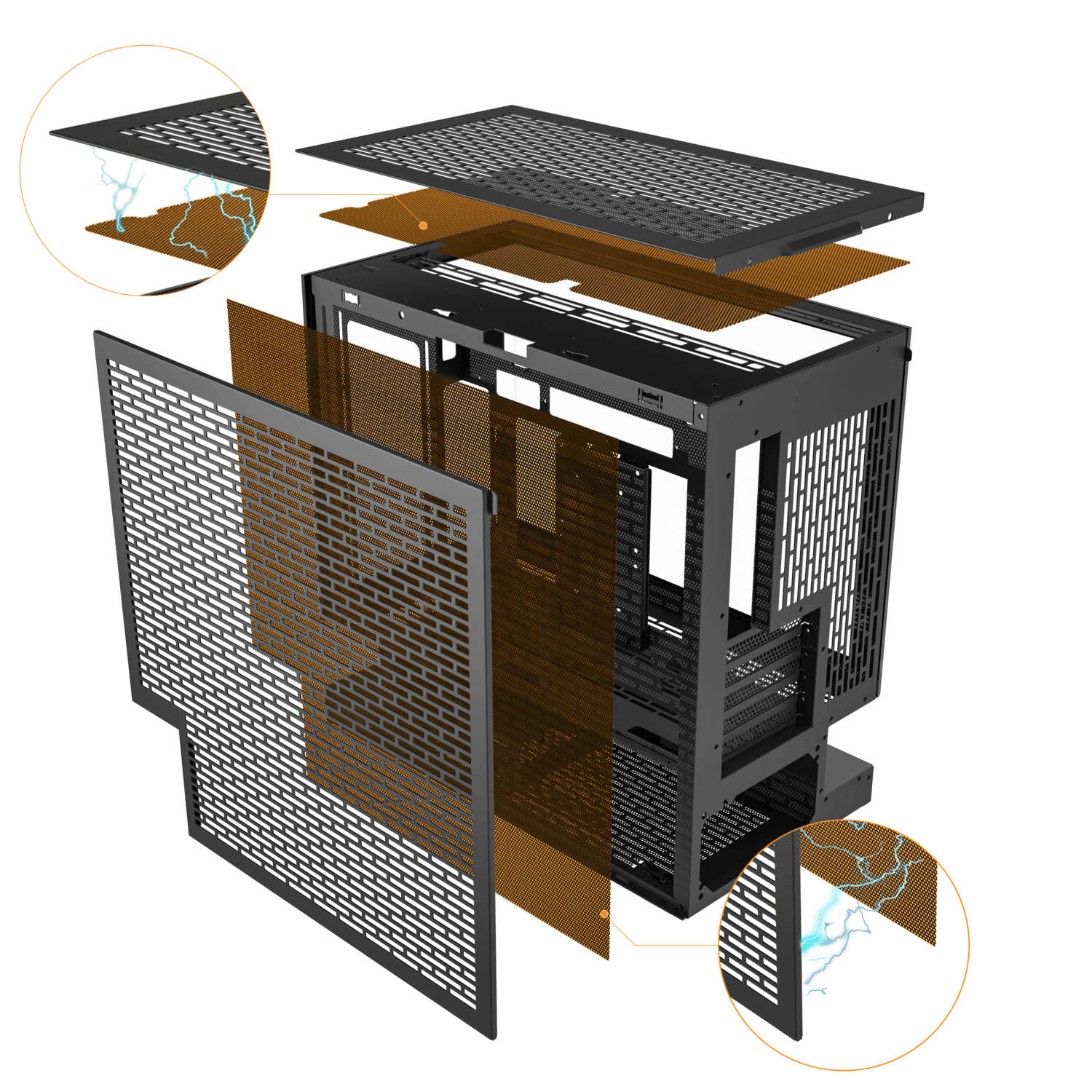 Side, top, and bottom panels use magnetic filters. Easy to remove and clean, keeping the system clear of dust.