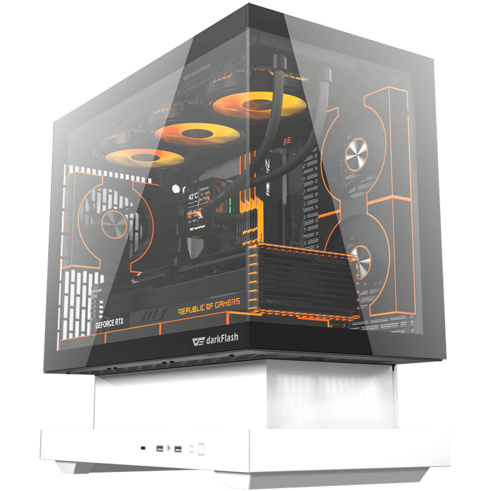 The floating base doubles as a customizable stage, perfect for figures, or lighting. Blending cooling performance with creative expression, it turns every build into a showcase. Decorative items and lighting are for demonstration only, not included with the product.
