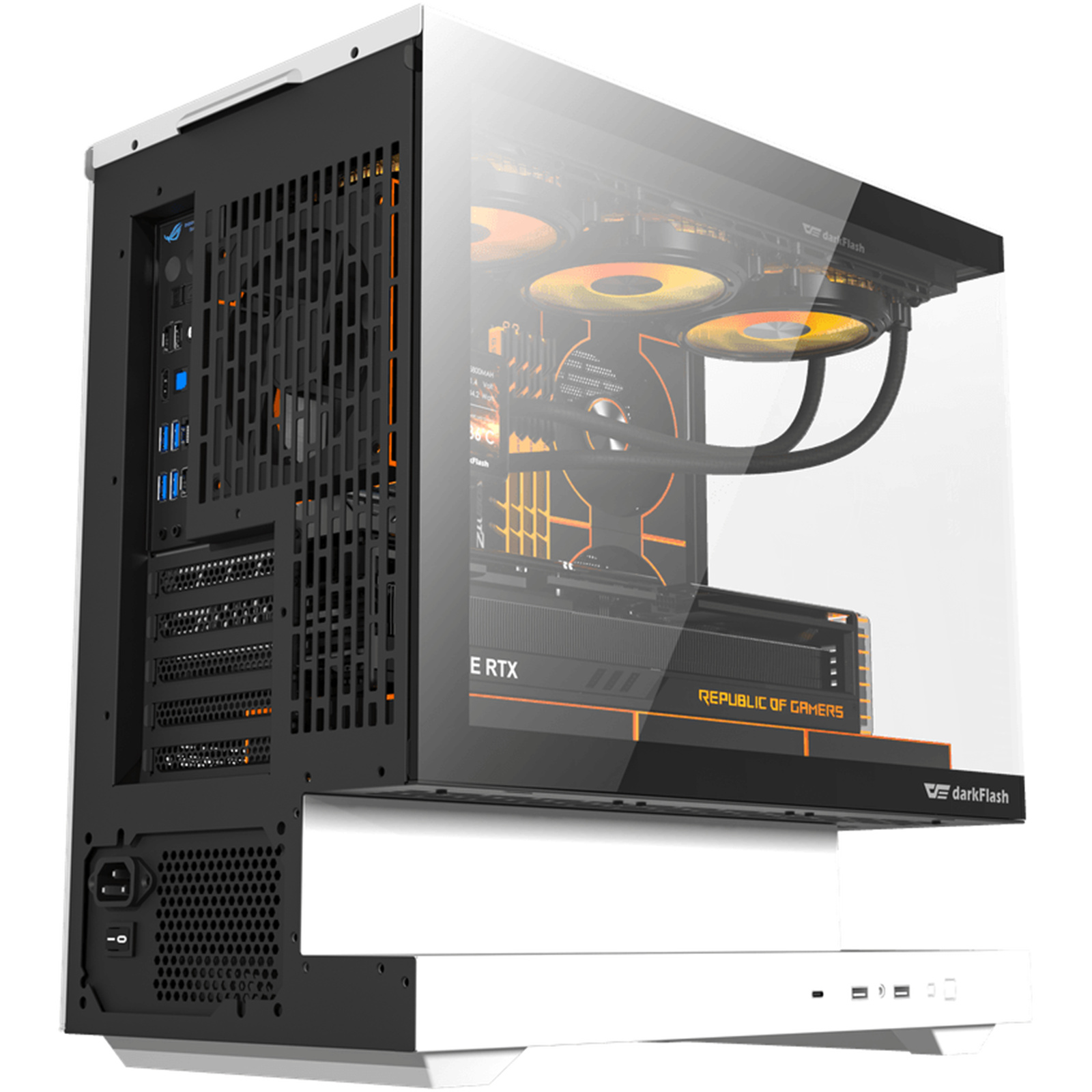 DARKFLASH F1 Tempered Glass mATX / ITX Mini Tower Case - Black / White 6x ARGB Fans - CPU Cooler Support up to 185mm - GPU Support up to 350mm - 5x PCI Slots - 360mm Radiator Support - Front I/O: 1x USB-C - 2x USB - HD Audio