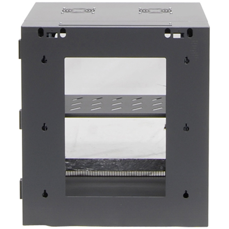 12RU 600mm Deep Universal Swing Wall Mount Cabinet. Removable Backmount (600x600x635mm). Includes 1x Fixed Shelf, 10x Cage Nuts, Removable Side Panels. Black Gloss Colour.