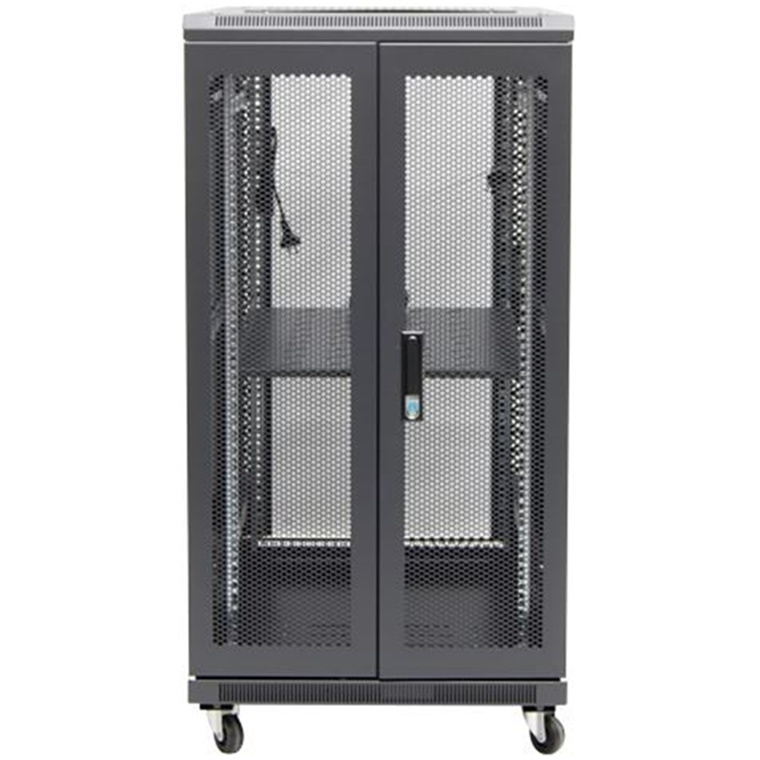 DYNAMIX 22RU Server Cabinet 1000mm Deep (600 x 1000 x 1190mm). Incl. 1 x Fixed Shelf, 4x Fans, 25x Cage Nuts, 4x Castors & 4x Level Feet. static load. Glass front door, mesh rear door.