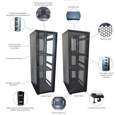 - Supplied with fixed shelves, fans, cage nuts, castors, levelling feet