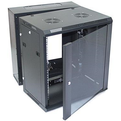 DYNAMIX 24RU 600mm Deep Universal Swing Wall Mount Cabinet. 200mm Removable Backmount. Supplied with 2x Rear Vertical Cable Trays, 6 way PDU and 10 cage nuts. Black