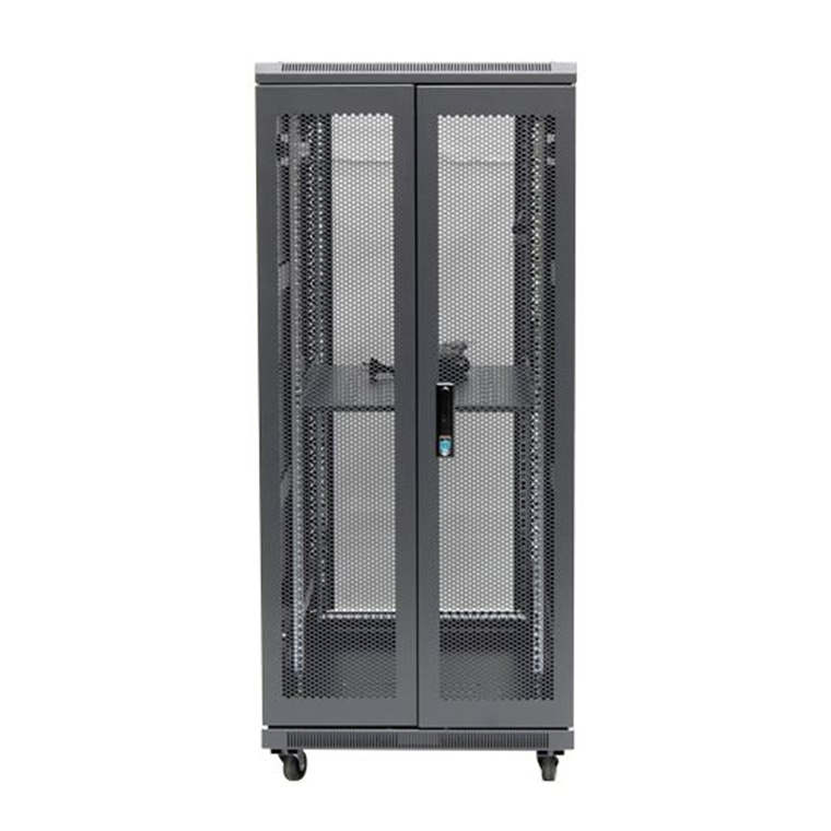 4x Level Feet. 800kg static load. Glass front door, mesh rear door. Black