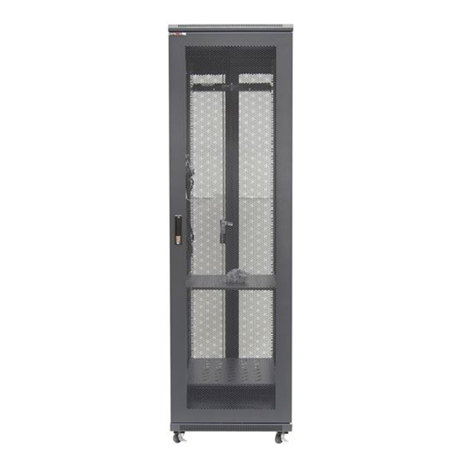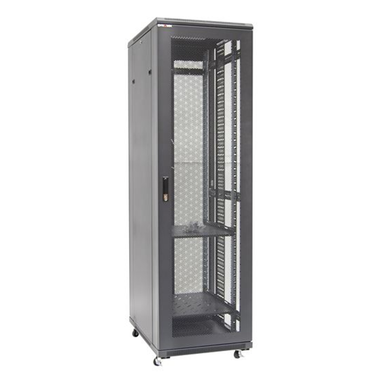 Dynamix RSME4268 42RU Server Cabinet 800mm Deep Front Mesh Door, Rear Mesh Double Doors, 2x 150mm Vertical Cable Tray 2x Fixed Shelves, 2x 6- distribution unit, bolt down kit