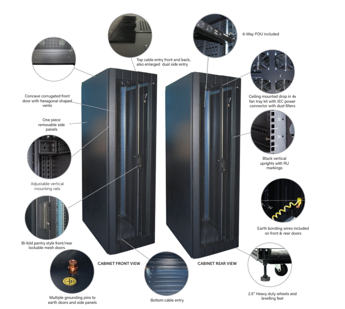 - Supplied with fixed shelves, fans, cage nuts, castors, levelling feet