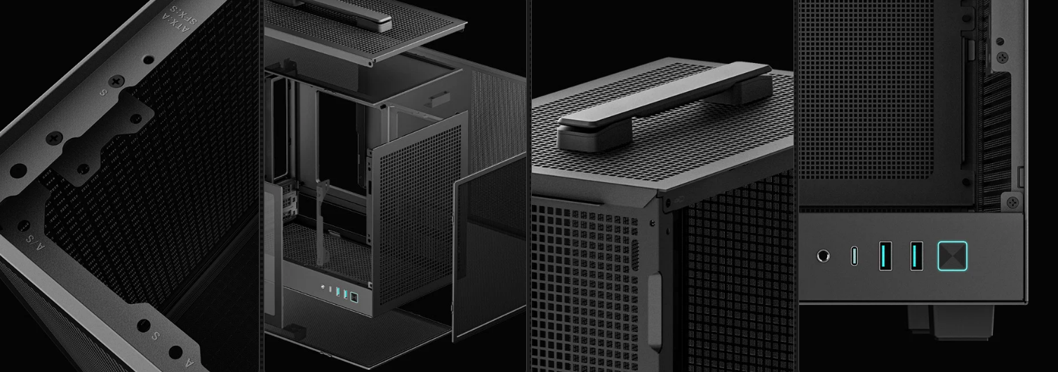 DEEPCOOL CH160 MESH ITX case Black CPU Cooler Support Upto 172mm, GPU Support Upto 305mm, 3x PCI Slot, Front I/O: 2x USB 3.0, 1x Type C, HD Audio