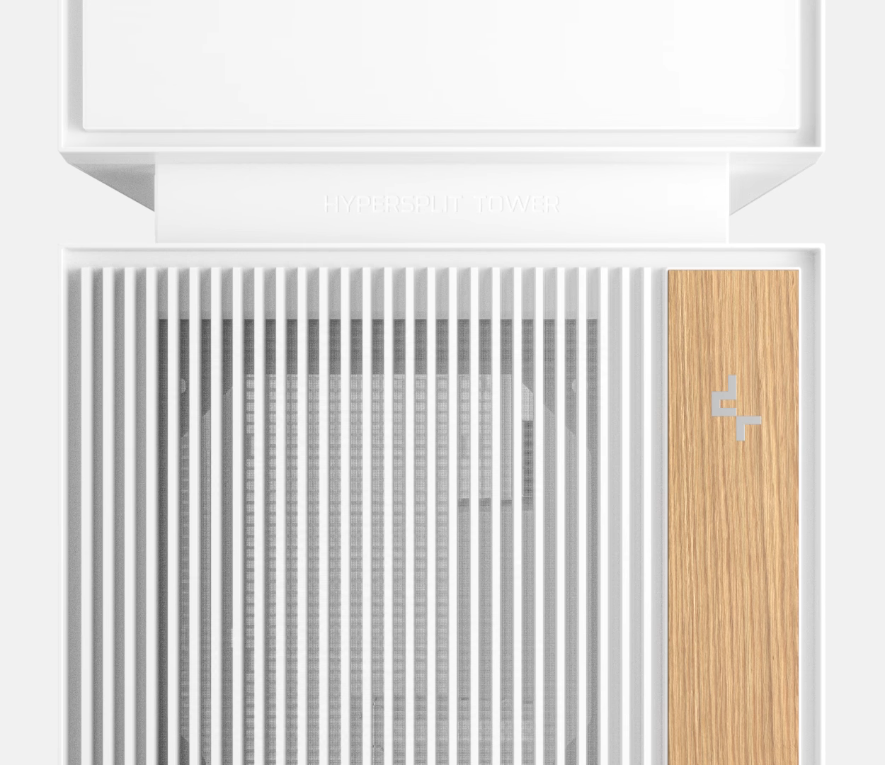 A raised top chamber redefines the overall silhouette while keeping space organized. Vertical grille bars at the front provide natural ventilation and create visual rhythm, with real wood adding an organic finish to the clean, modern aesthetic.