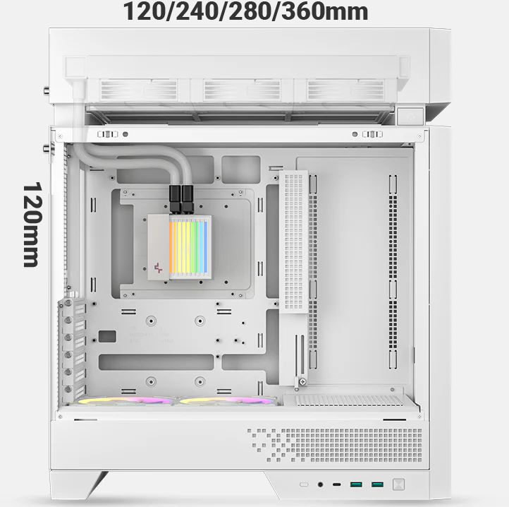 DEEPCOOL CL6600 White ATX mid Tower Gaming Case 360mm AIO Pre-installed, 2x 120mm ARGB Reverse Fan Pre-installed, CPU Cooler Support upto 175mm, GPU Support upto 413mm, 7x PCI Slot, Front I/O: 2x USB, 1x Type C, HD Audio
