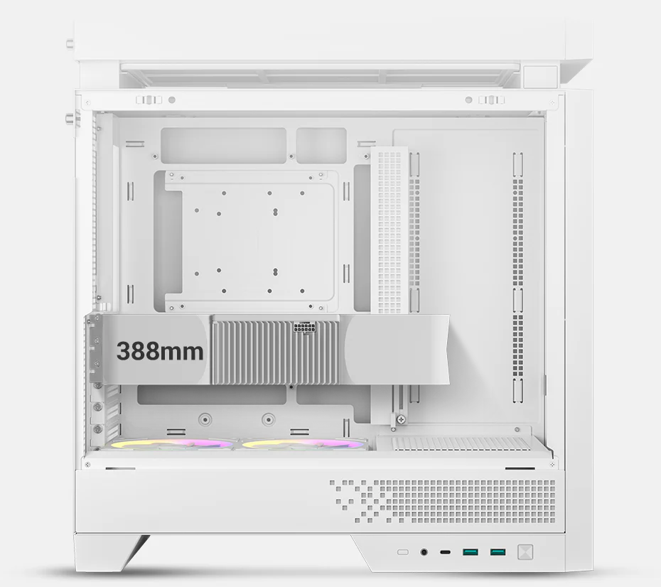 CL6600 WH gives high-end builds plenty of room, fitting GPUs up to 388mm, tall air coolers to 175mm, and standard ATX PSUs up to 160mm. Back-connect motherboard support and 7 expansion slots make future upgrades simple.