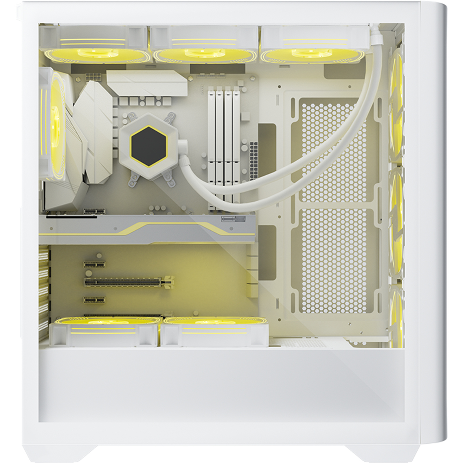 The Air Power G3 offers support for up to 12 fans, 240/280/360/420mm liquid cooling at the front and 240/280/360mm liquid cooling at the top, providing the flexibility to maximize your cooling setup for peak gaming performance.