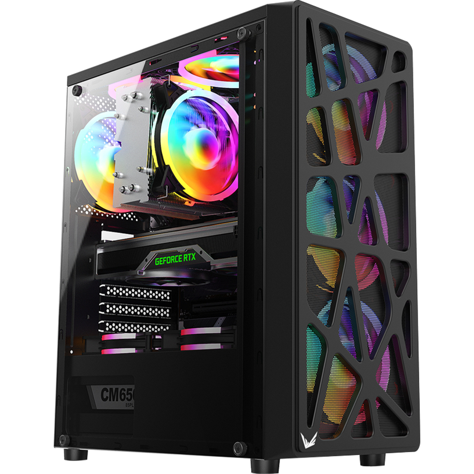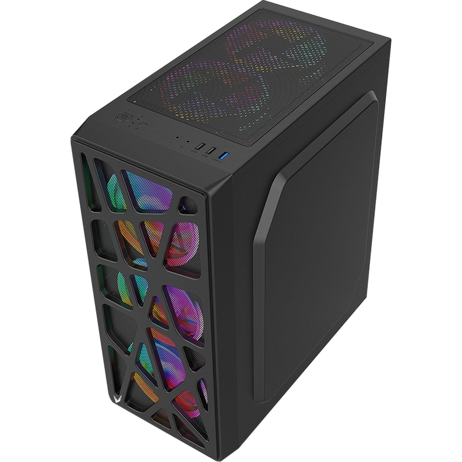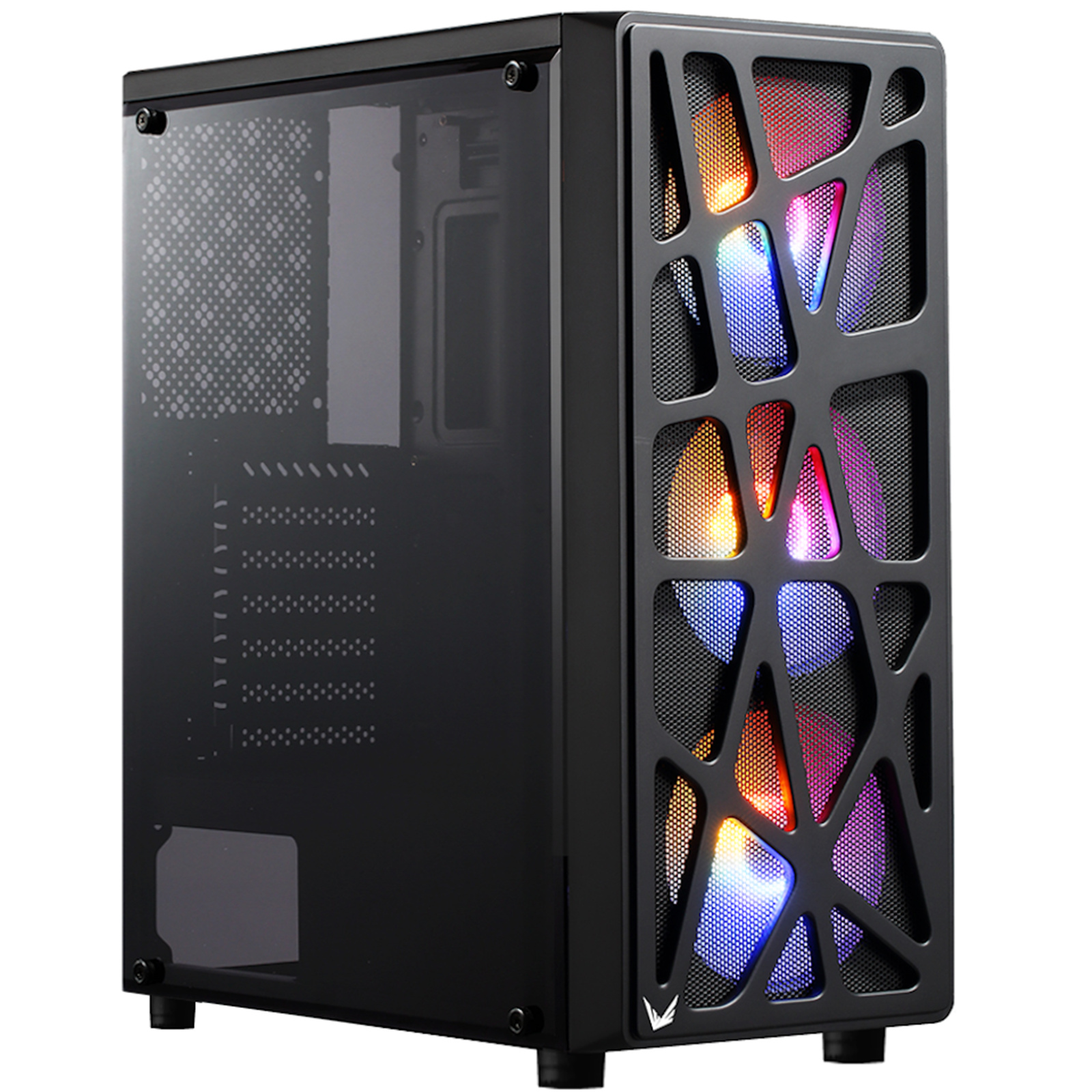 With a mesh front panel design, this entry-level or mid-level mid tower gaming case offers excellent airflow and allows you to admire your front LED fans in action. The full acrylic side panel provides a clear view of your system's interior. Additionally, it supports liquid cooling in both the front and top sections of the case, ensuring optimal cooling efficiency.