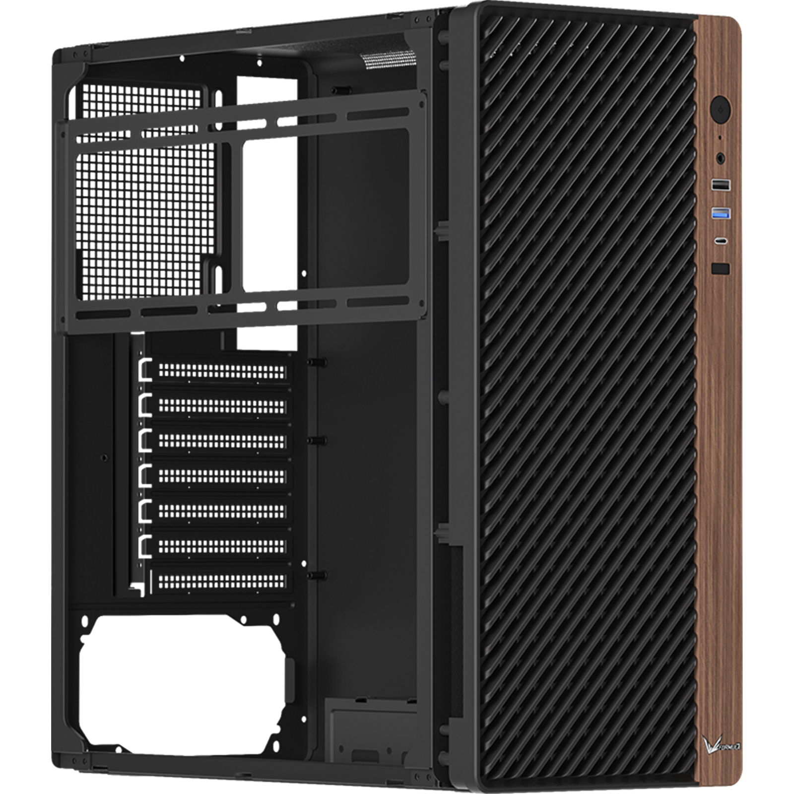 Formula V Line TimberLine T2 Black Wood AR Mid Tower ATX Case Side Mesh Panel, 4x 120mm ARGB PWM Pre-installed, CPU Cooler Support Upto 165mm, GPU Support Upto 340mm, 7x PCI Slot, 360mm Radiator Supported, Front I/O: 1x USB 3.0, 1x USB 2.0,
