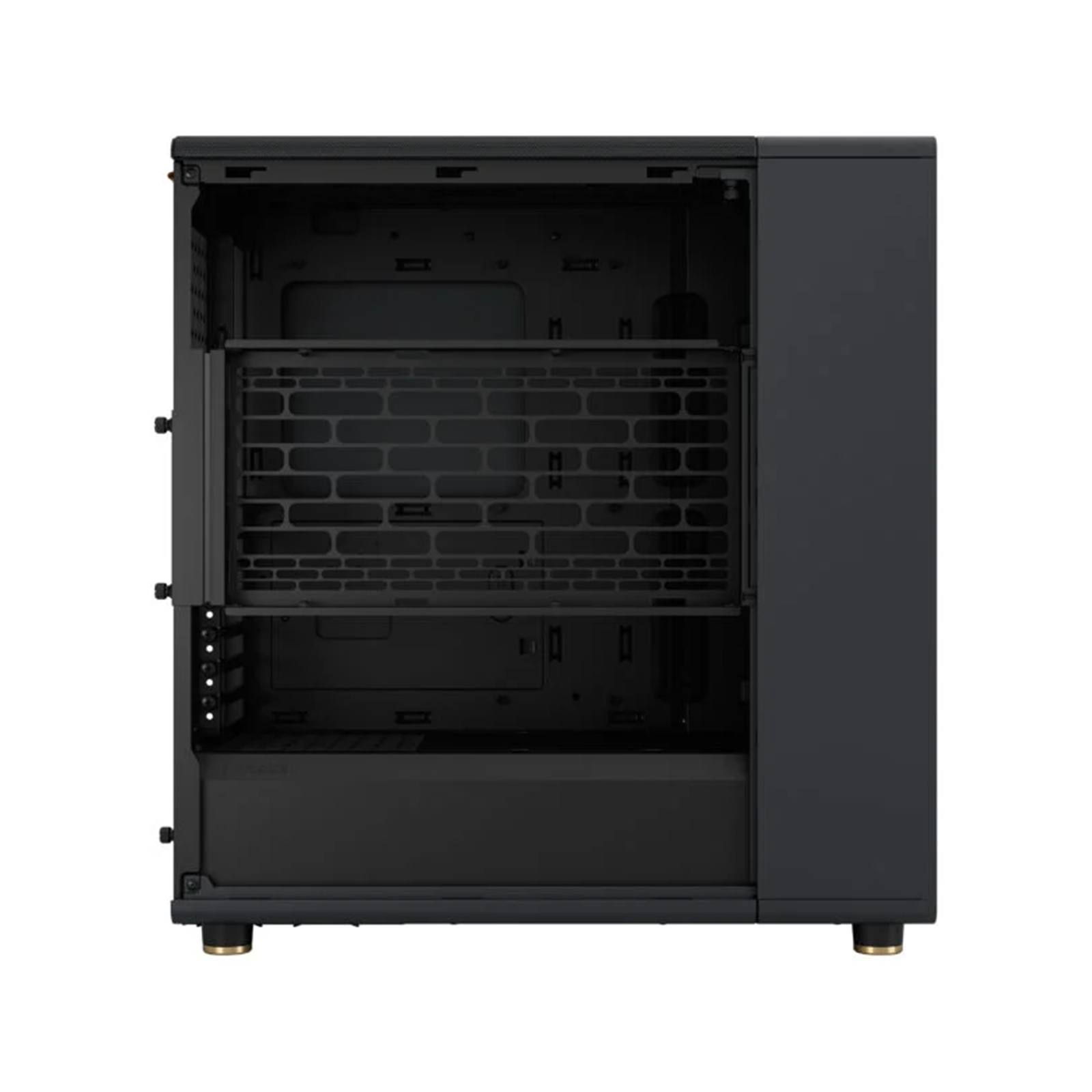 North reimagines the gaming PC, introducing natural materials and bespoke details to make gaming a stylish addition to the living space. Fusing design and airflow engineering, the case features fine-patterned mesh ventilation and an open front with real walnut or oak panels. The design is complemented by sleek brass or steel details and an integrated tab for easy access to the top of the case. Inside, North offers an intuitive interior layout and generous compatibility.