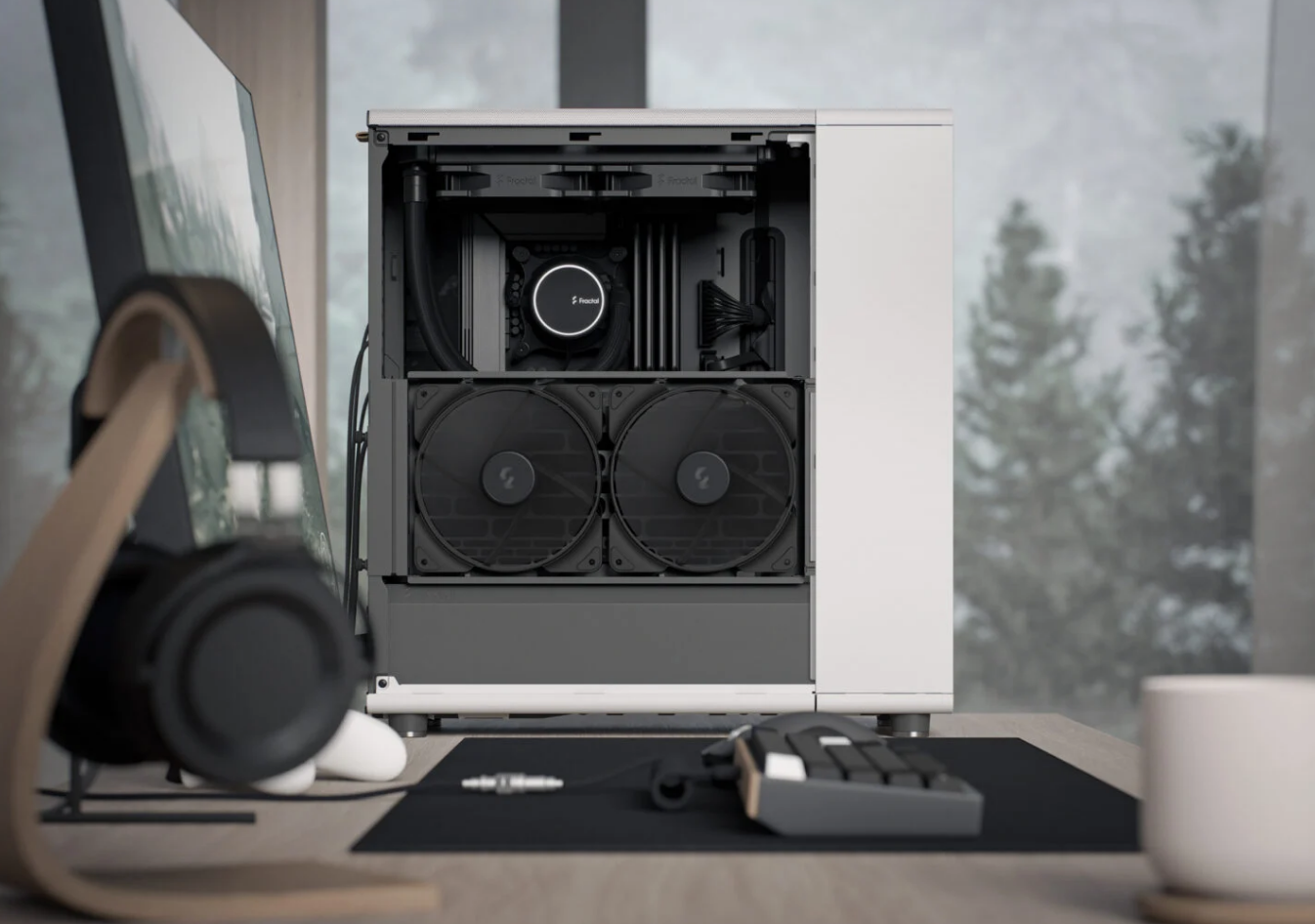 North reimagines the gaming PC, introducing natural materials and bespoke details to make gaming a stylish addition to the living space. Fusing design and airflow engineering, the case features fine-patterned mesh ventilation and an open front with real walnut or oak panels. The design is complemented by sleek brass or steel details and an integrated tab for easy access to the top of the case. Inside, North offers an intuitive interior layout and generous compatibility.