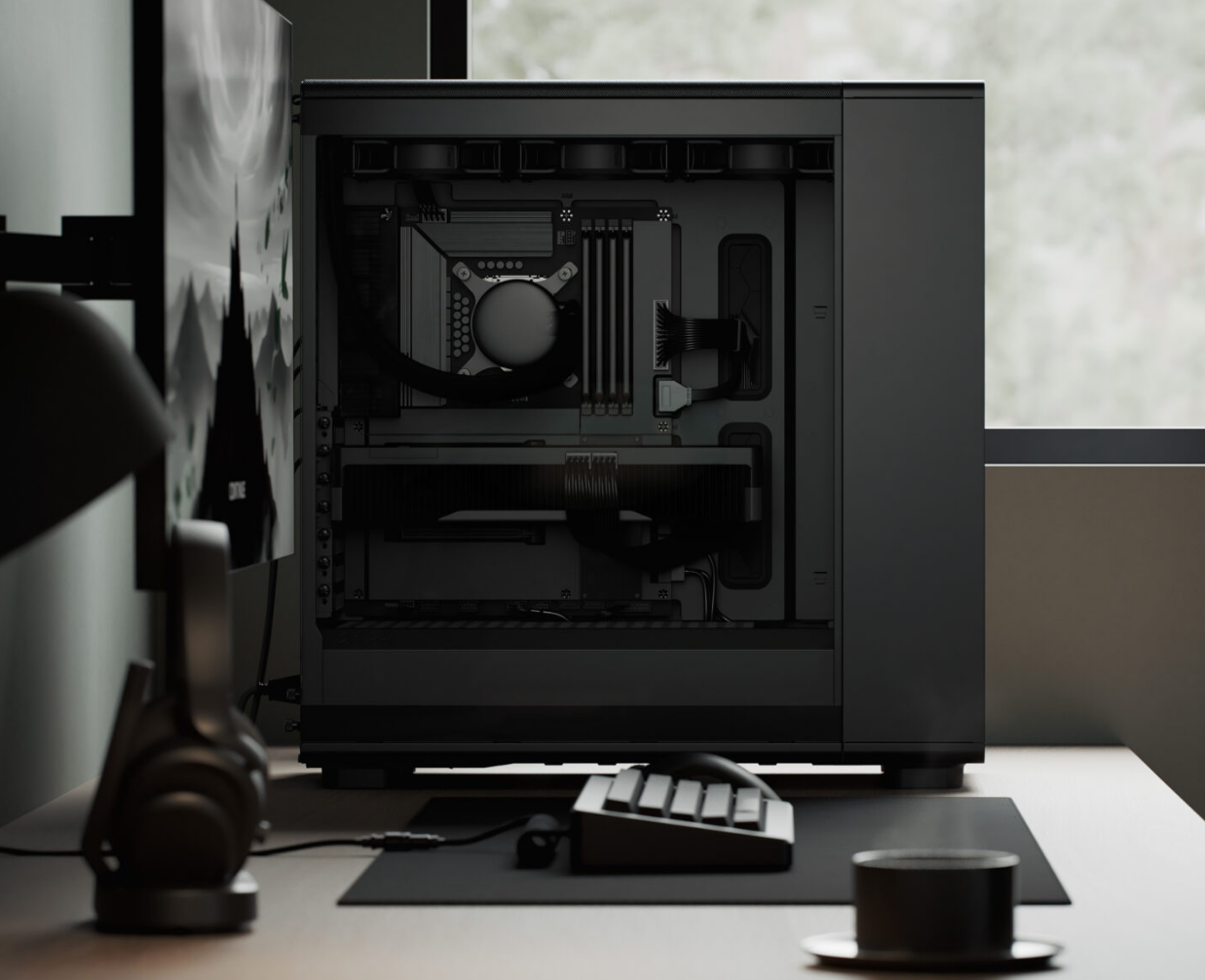 Integrate your setup seamlessly into your gaming station with clean lines, a tidy interior, and refined details such as a laser-etched aluminum badge.