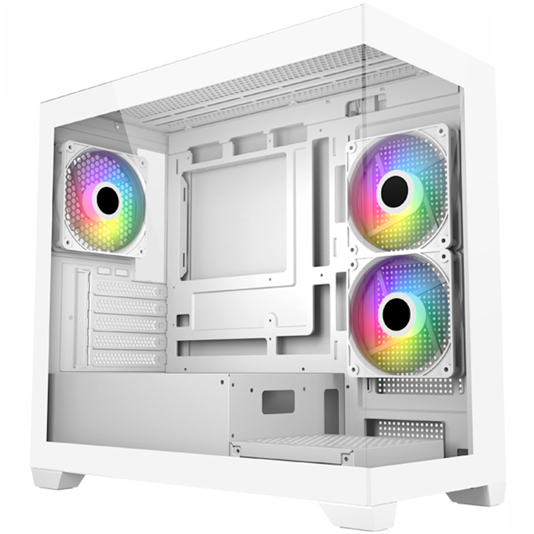 The side features dual reverse ARGB fans, while the rear is equipped with a ARGB fan.