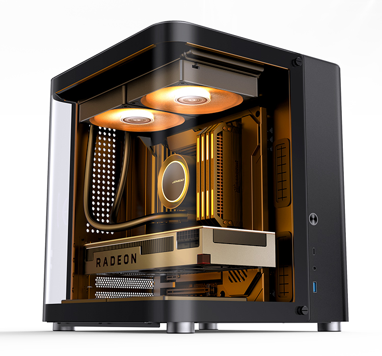 Jonsbo TK-1 Black mATX Mini Tower Gaming Case, Bi-Bent Surround View Curved Tempered Glass, CPU Cooler Support Upto 165mm, GPU Support Upto 280mm, 4x PCI Slot, 240mm Radiator Supported, Front I/O: 1x USB 3.2, 1x Type C, HD Audio