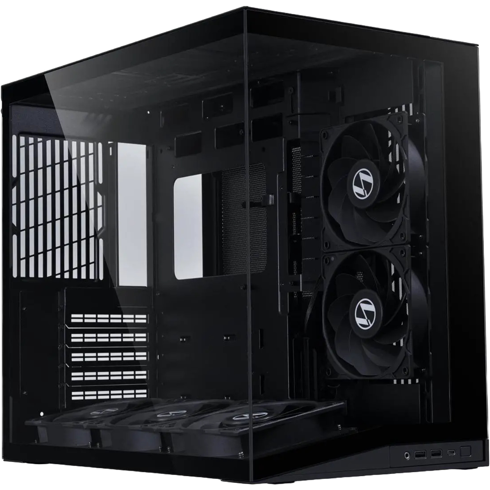 Flow versions come with five reverse blade PWM fans-three at the bottom and two on the side, for strong, silent airflow right out of the box.