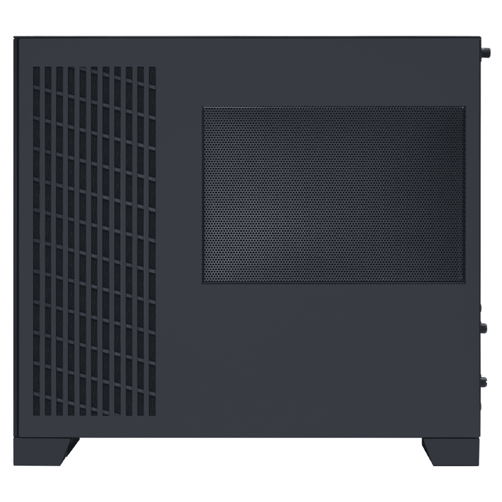 An extended side mesh design accommodates ATX PSUs up to 200mm without increasing the case width.
