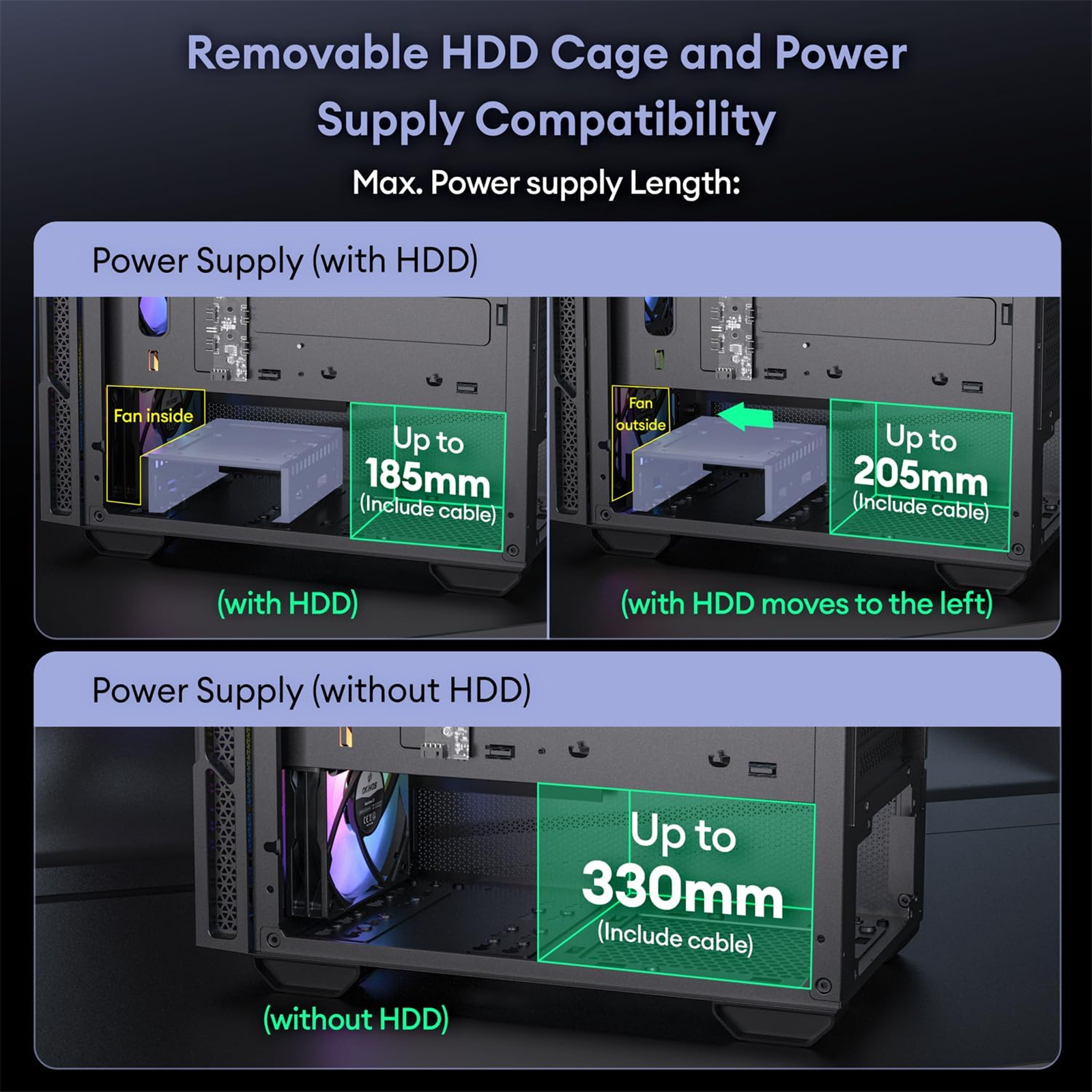 =285mm (When the fan is installed at the rear of the front panel); =320mm (When the fan is installed in the front of the front panel).