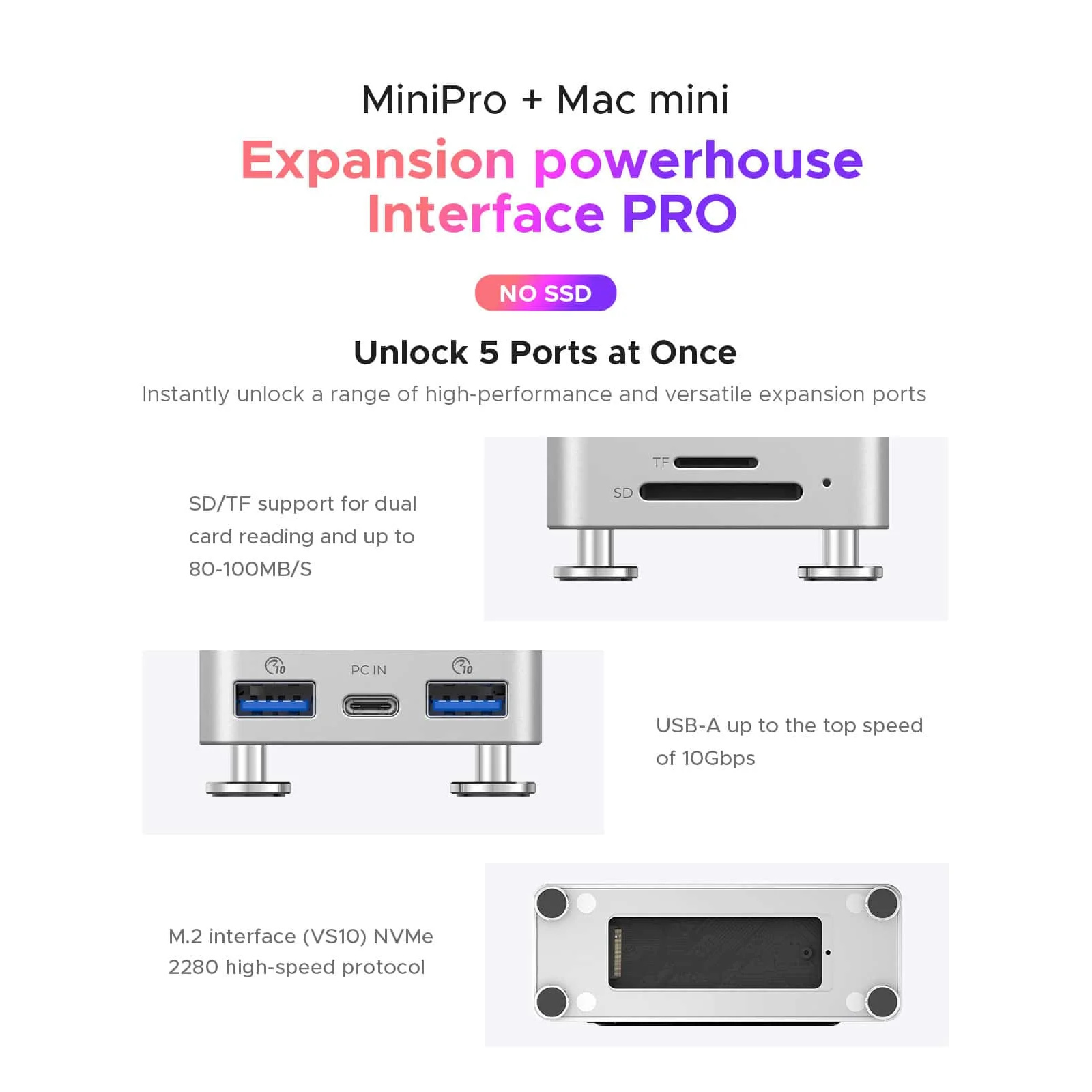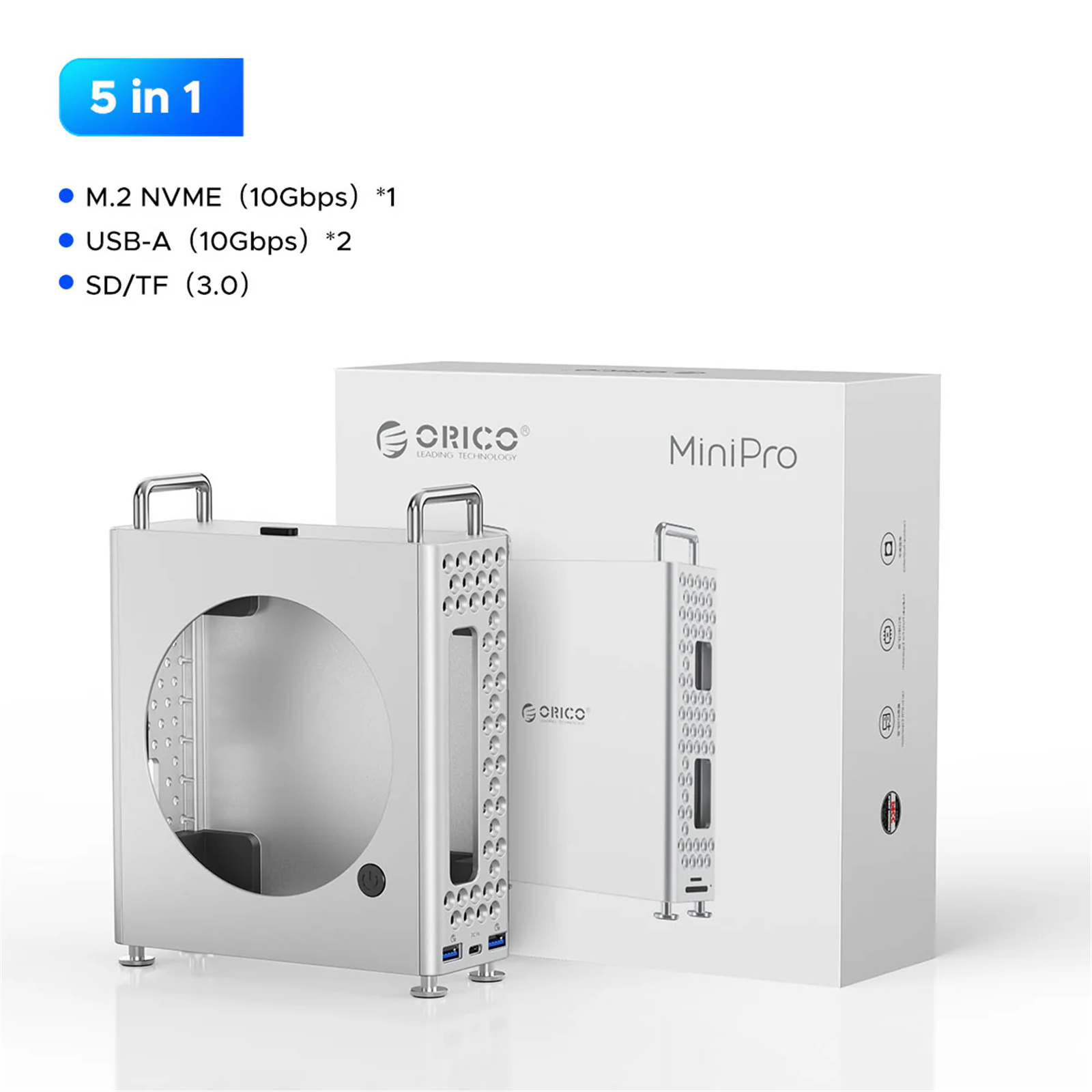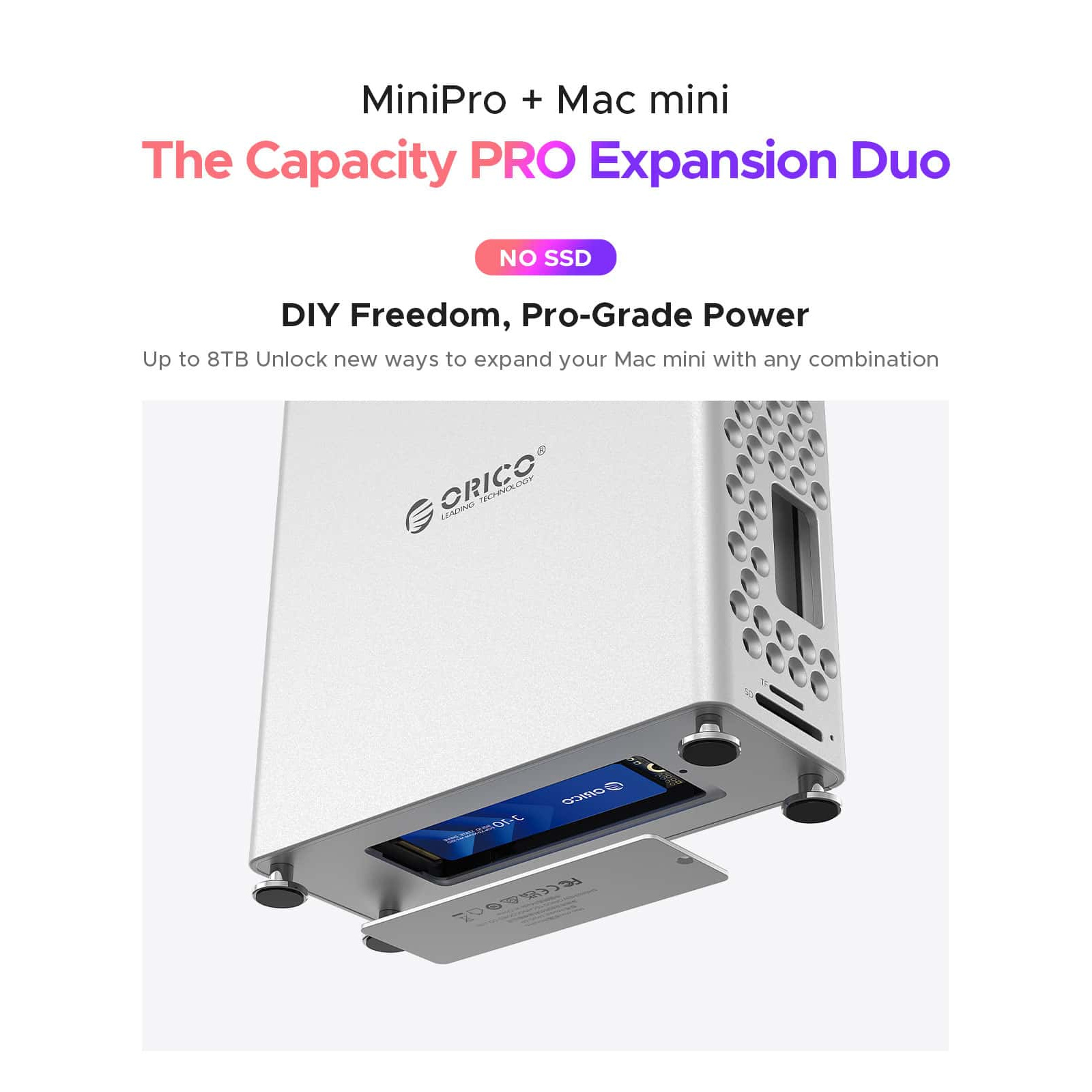 Orico Mini Pro 5 in 1 Stand for Mac Mini M4 With Nvme Enclosure, USB-A ports and SD/TF reader