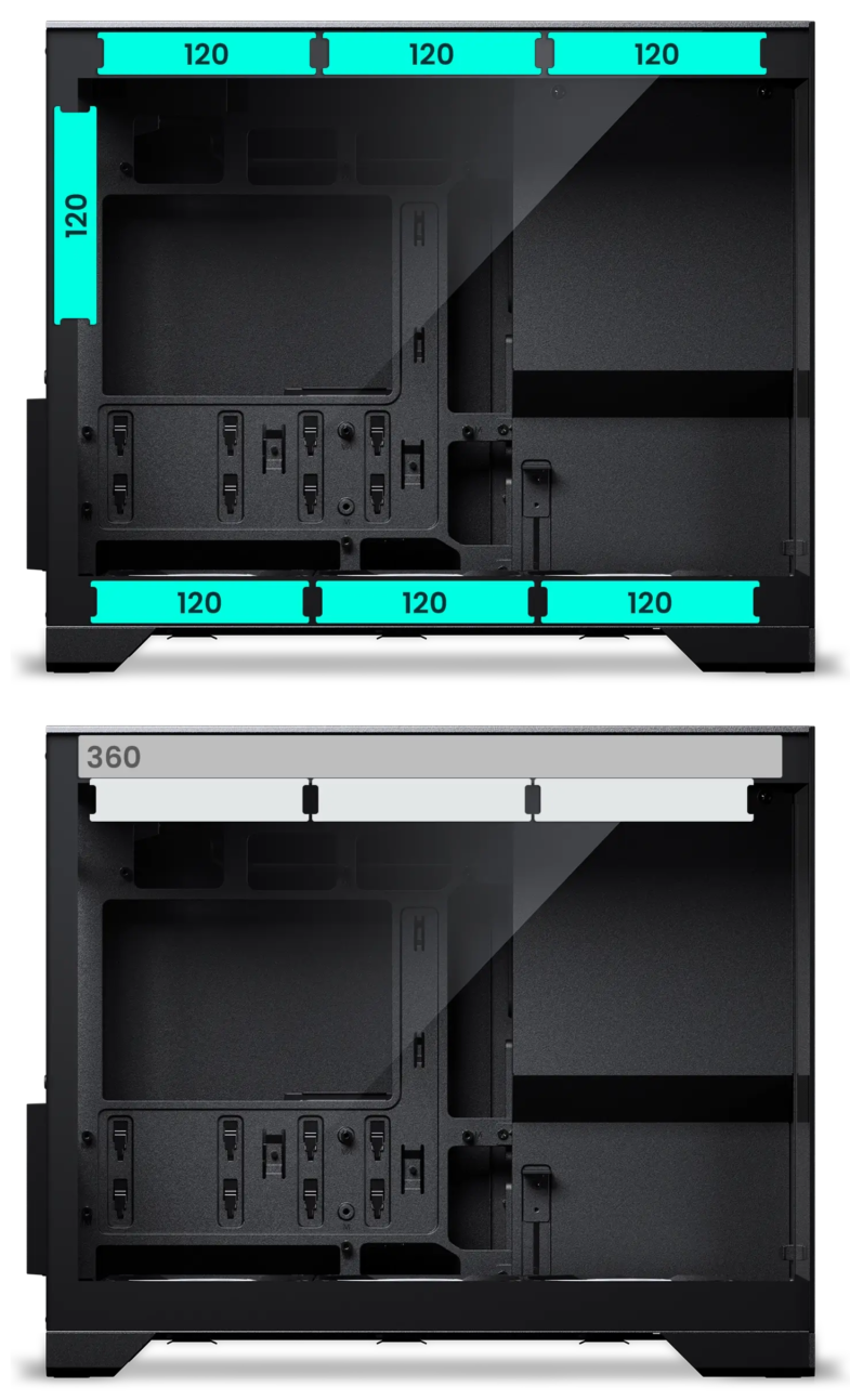 - Dedicated 360 radiator space in the top of the chassis.