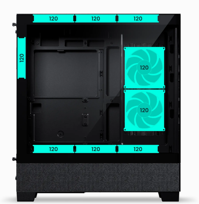 - Triple 120mm positions on the midplate for direct GPU cooling.